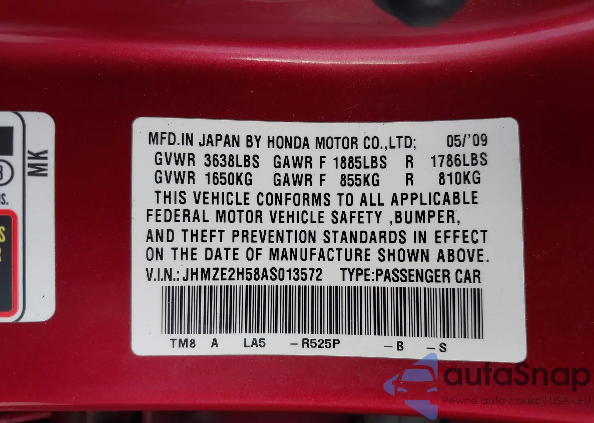 VIN: JHMZE2H58AS013572