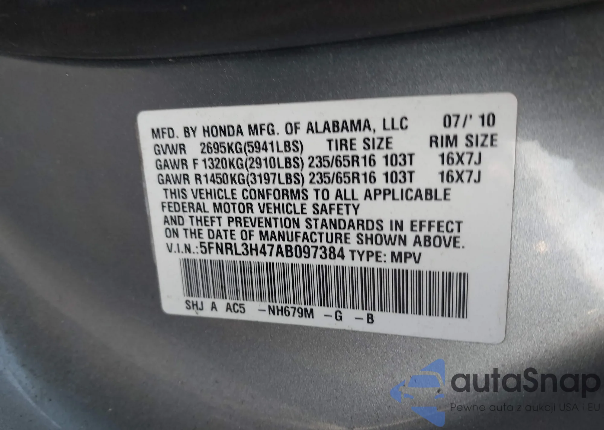 VIN: 5FNRL3H47AB097384