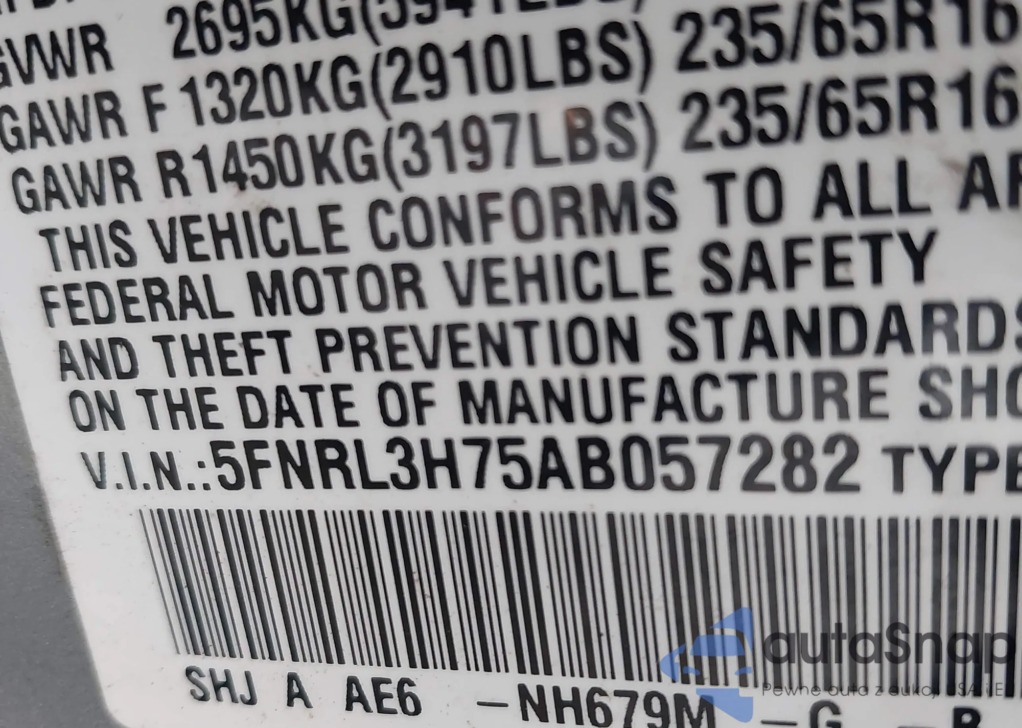 VIN: 5FNRL3H75AB057282
