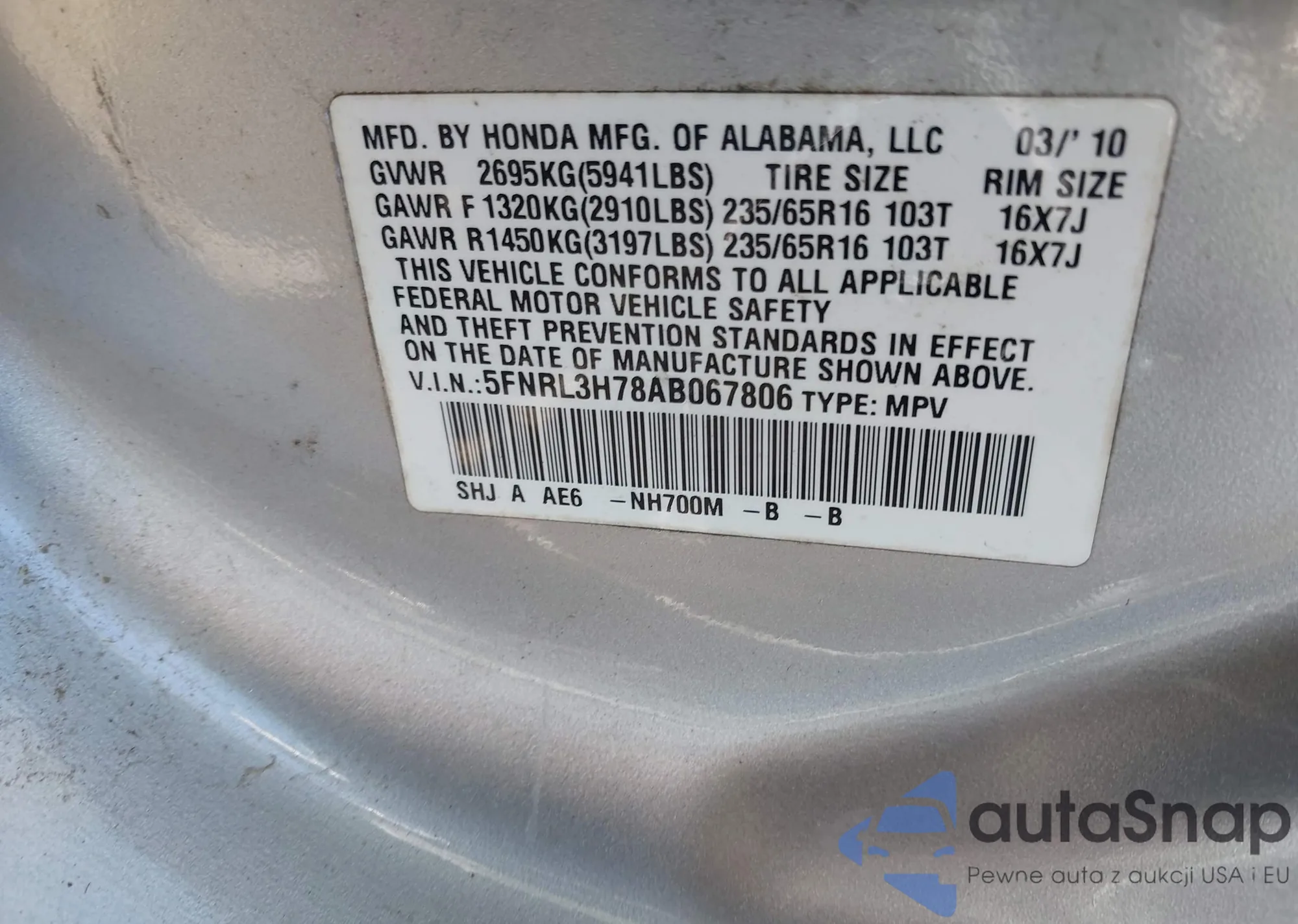 VIN: 5FNRL3H78AB067806