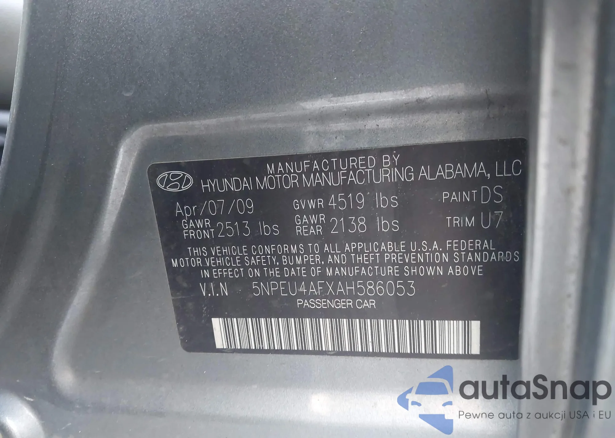 VIN: 5NPEU4AFXAH586053