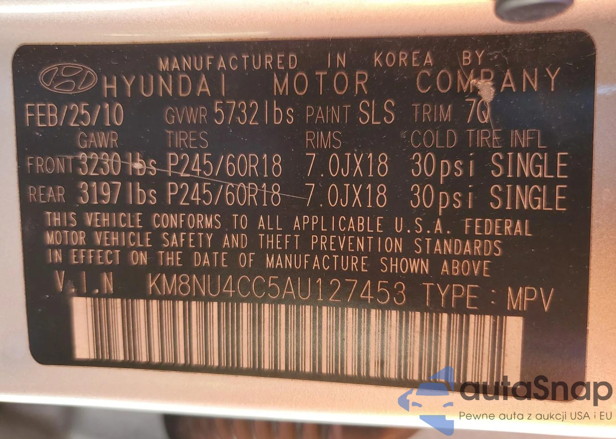 VIN: KM8NU4CC5AU127453
