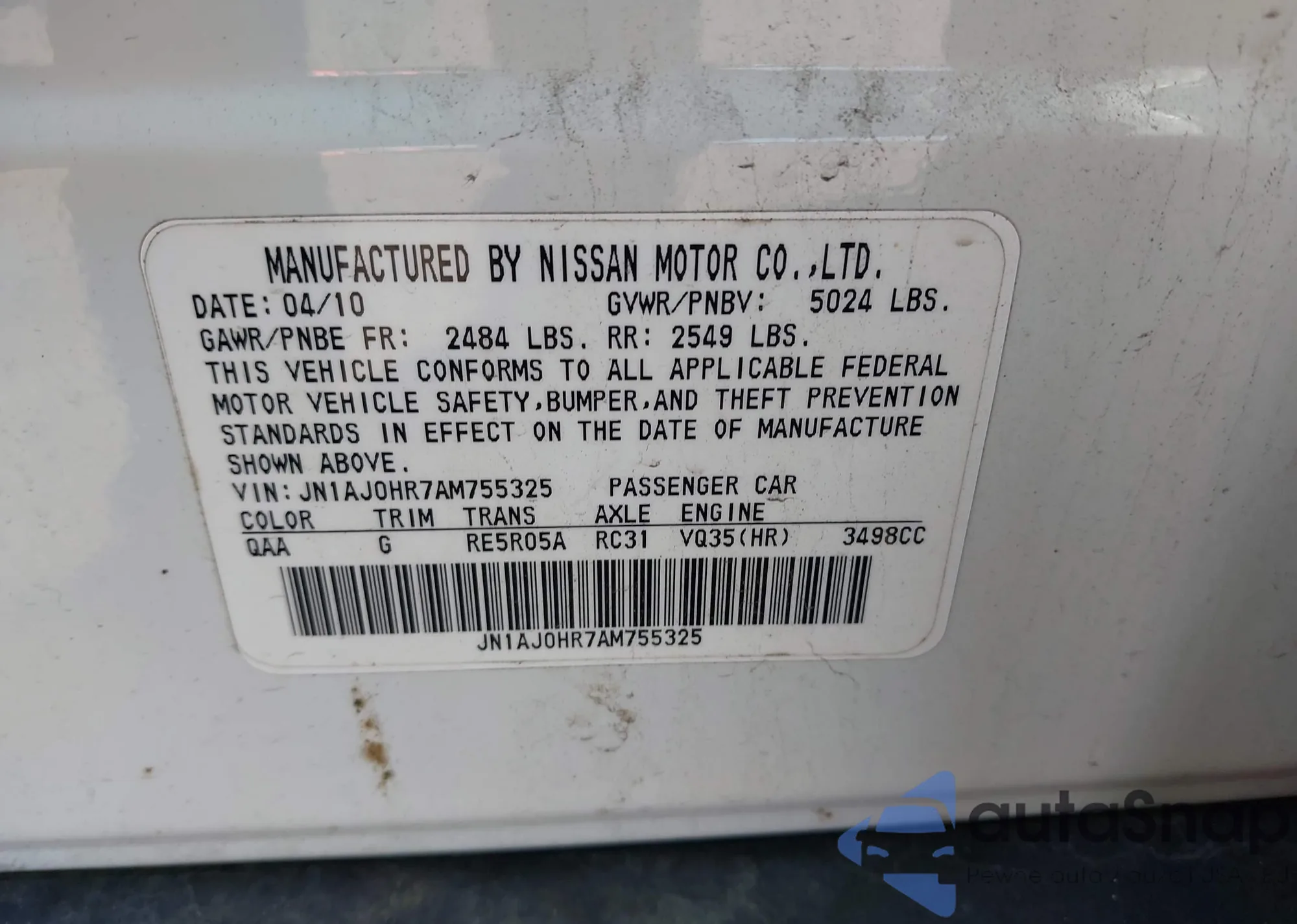 Автомобиль Infiniti EX 2010 (VIN JN1AJ0HR7AM755325) ранее не участвовал в торгах. Документы чистые, пробег соответствует или ниже среднего по рынку. Продаётся страховой компанией — рекомендуем покупку. Доставка в порт займет около 6–8 недель.