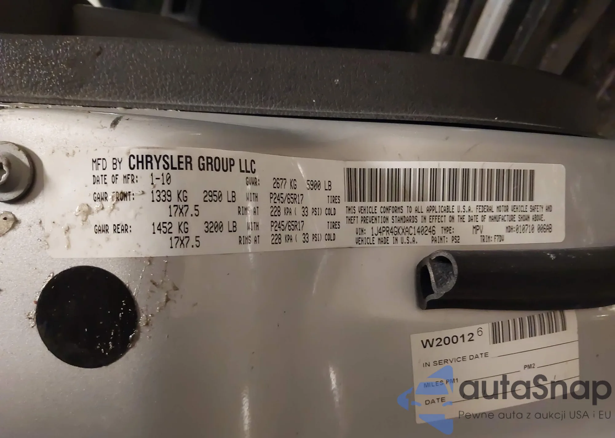 VIN: 1J4PR4GKXAC140246