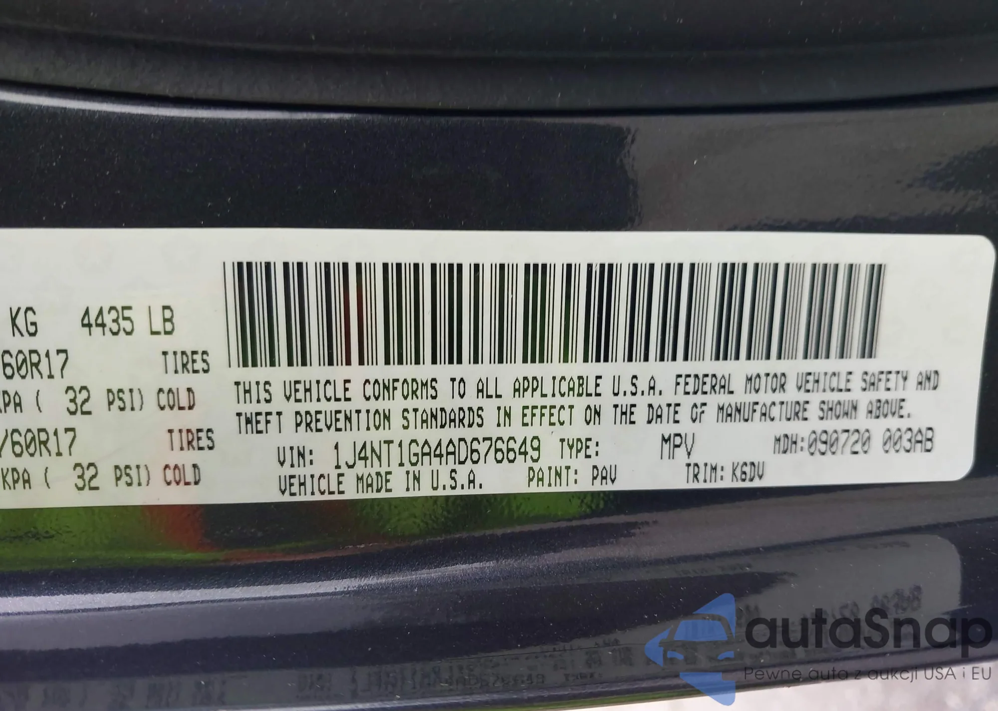 VIN: 1J4NT1GA4AD676649