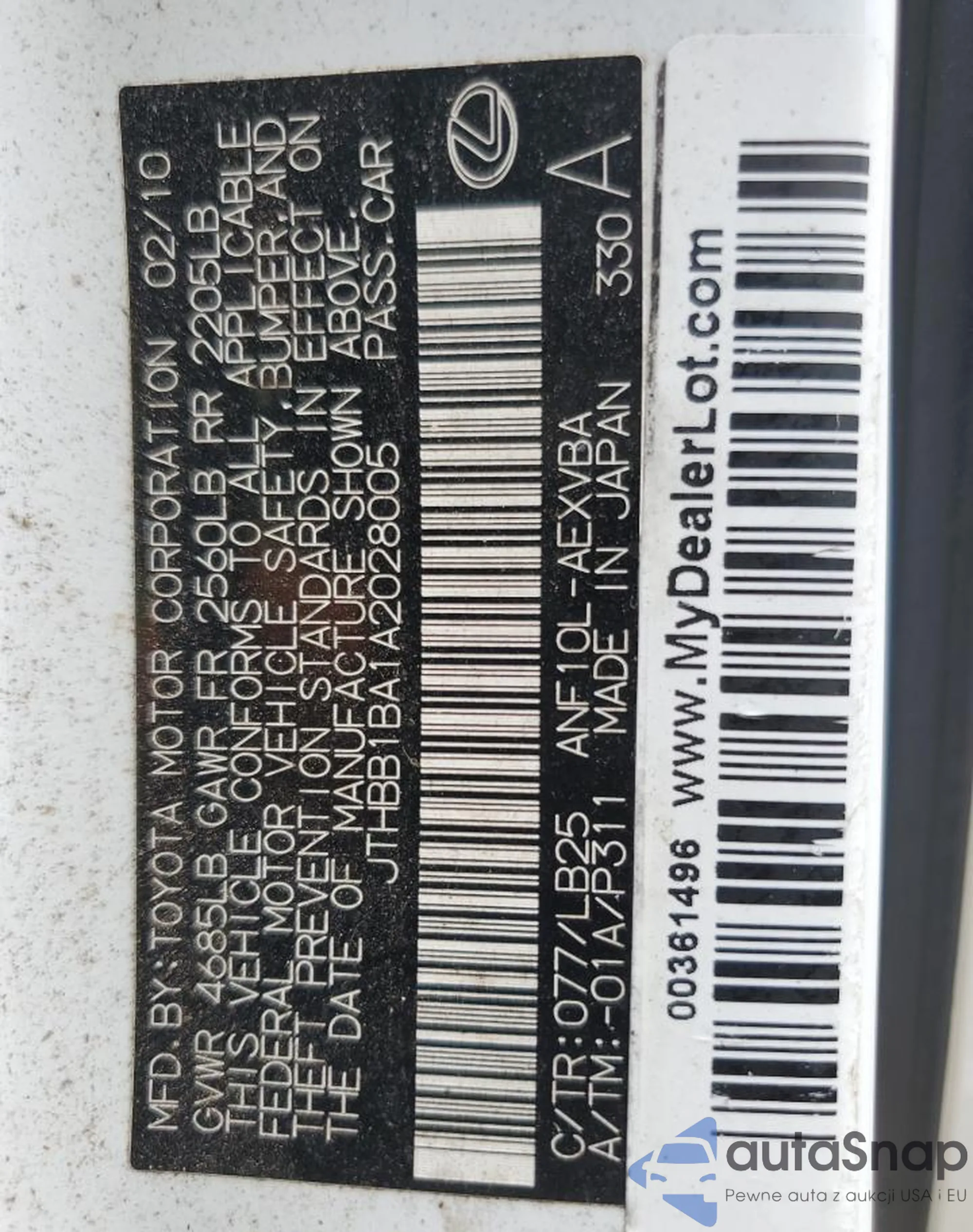 Автомобиль Lexus HS 2010 (VIN JTHBB1BA1A2028005) имеет документы, препятствующие регистрации. Могут возникнуть сложности при экспорте и регистрации. Обратитесь к экспертам AutaSnap для поиска альтернатив.