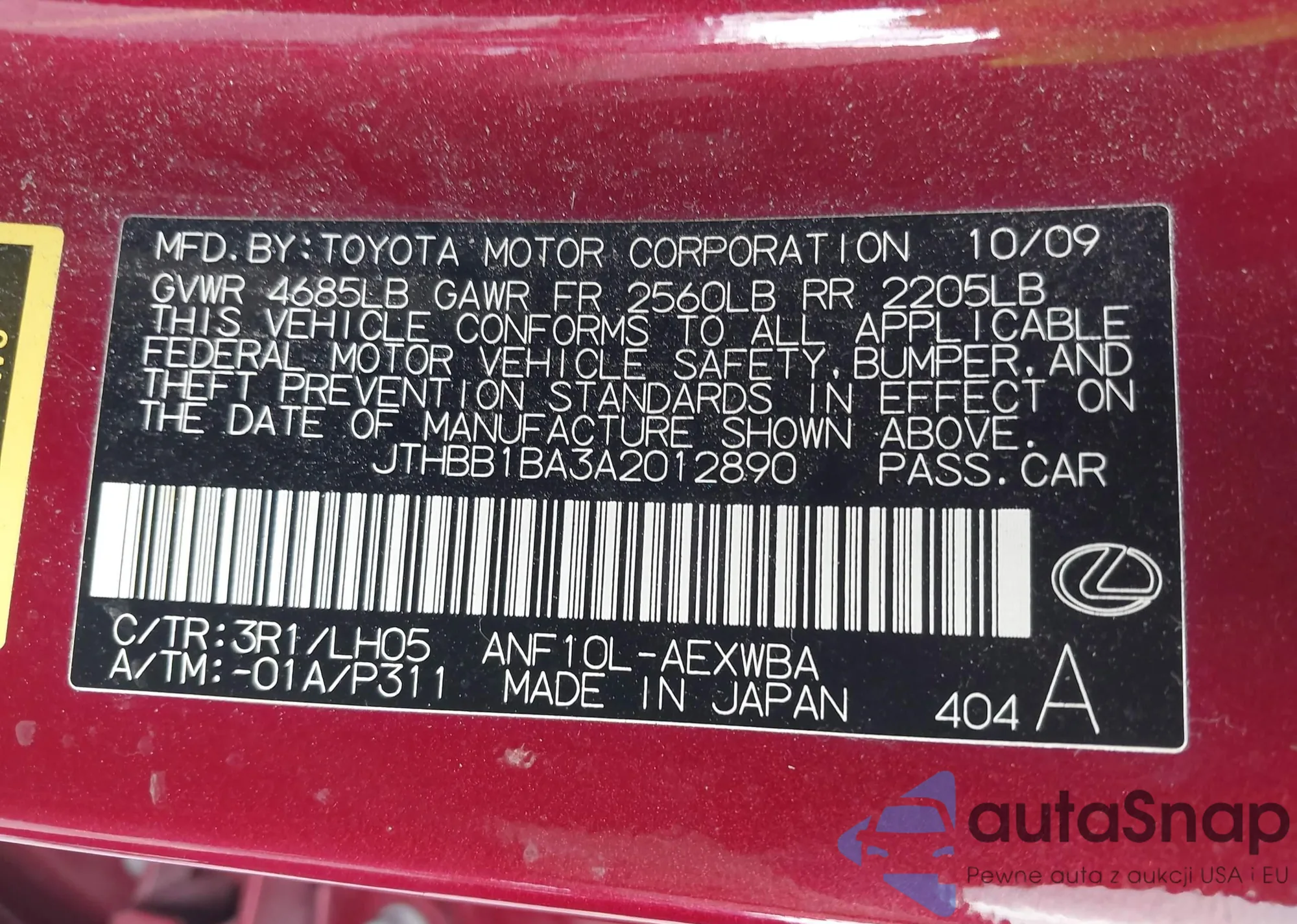 VIN: JTHBB1BA3A2012890