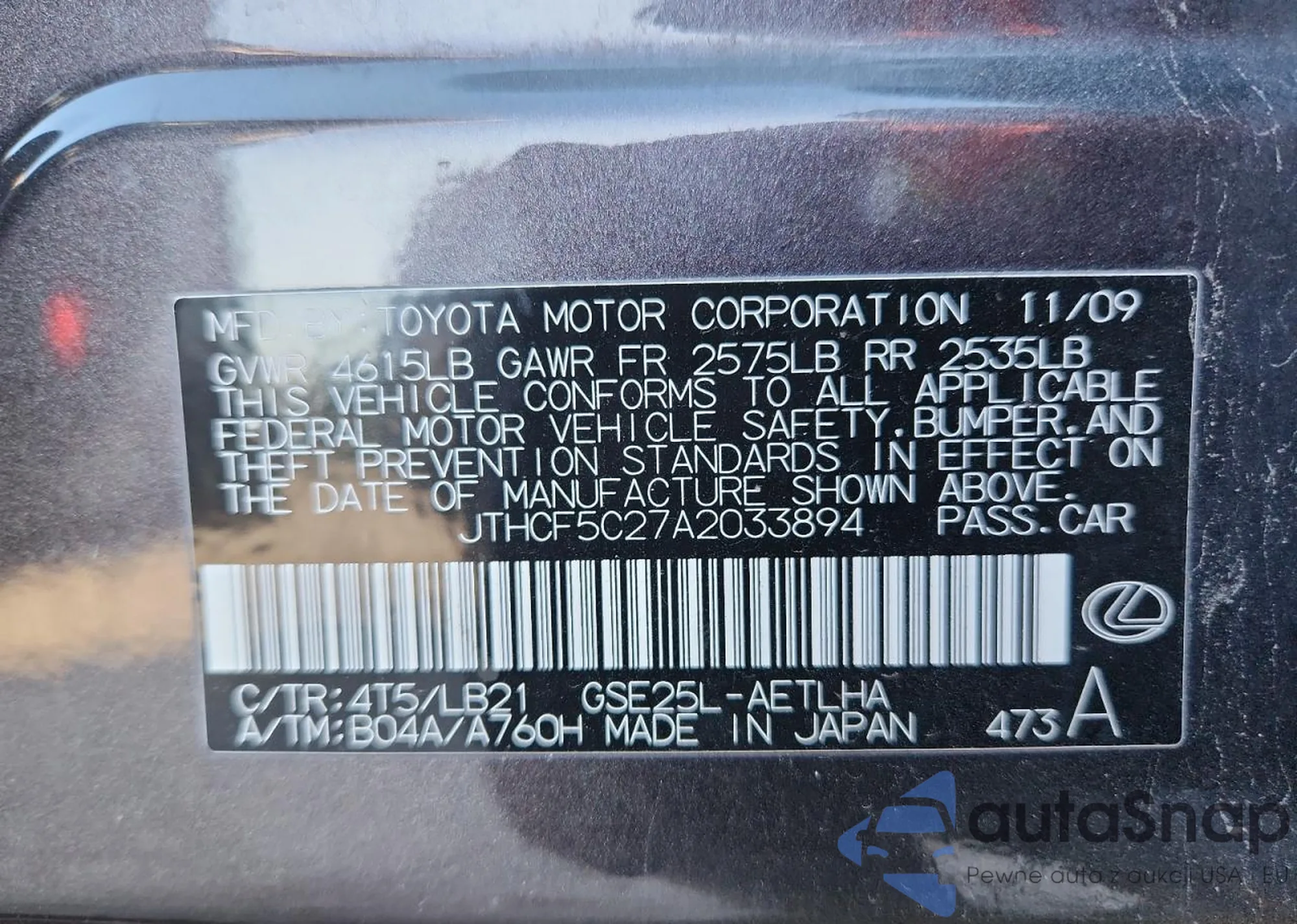 VIN: JTHCF5C27A2033894