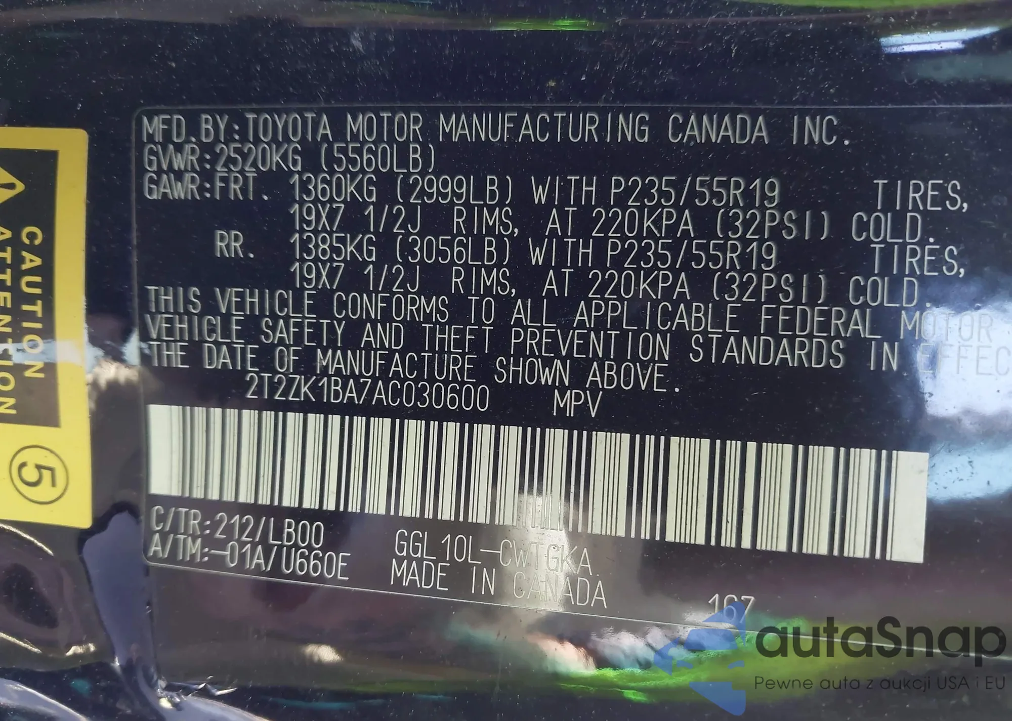 VIN: 2T2ZK1BA7AC030600