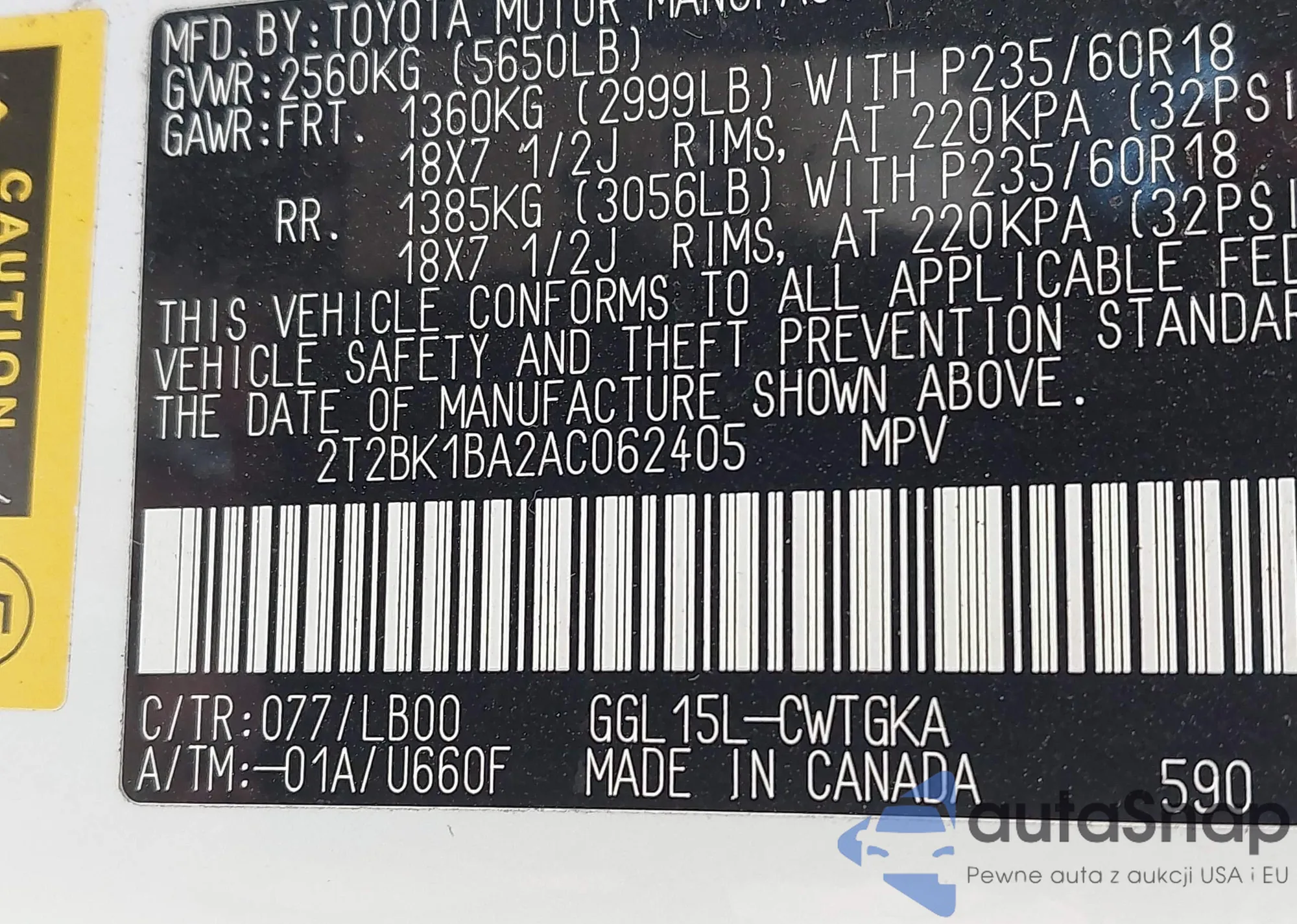 VIN: 2T2BK1BA2AC062405