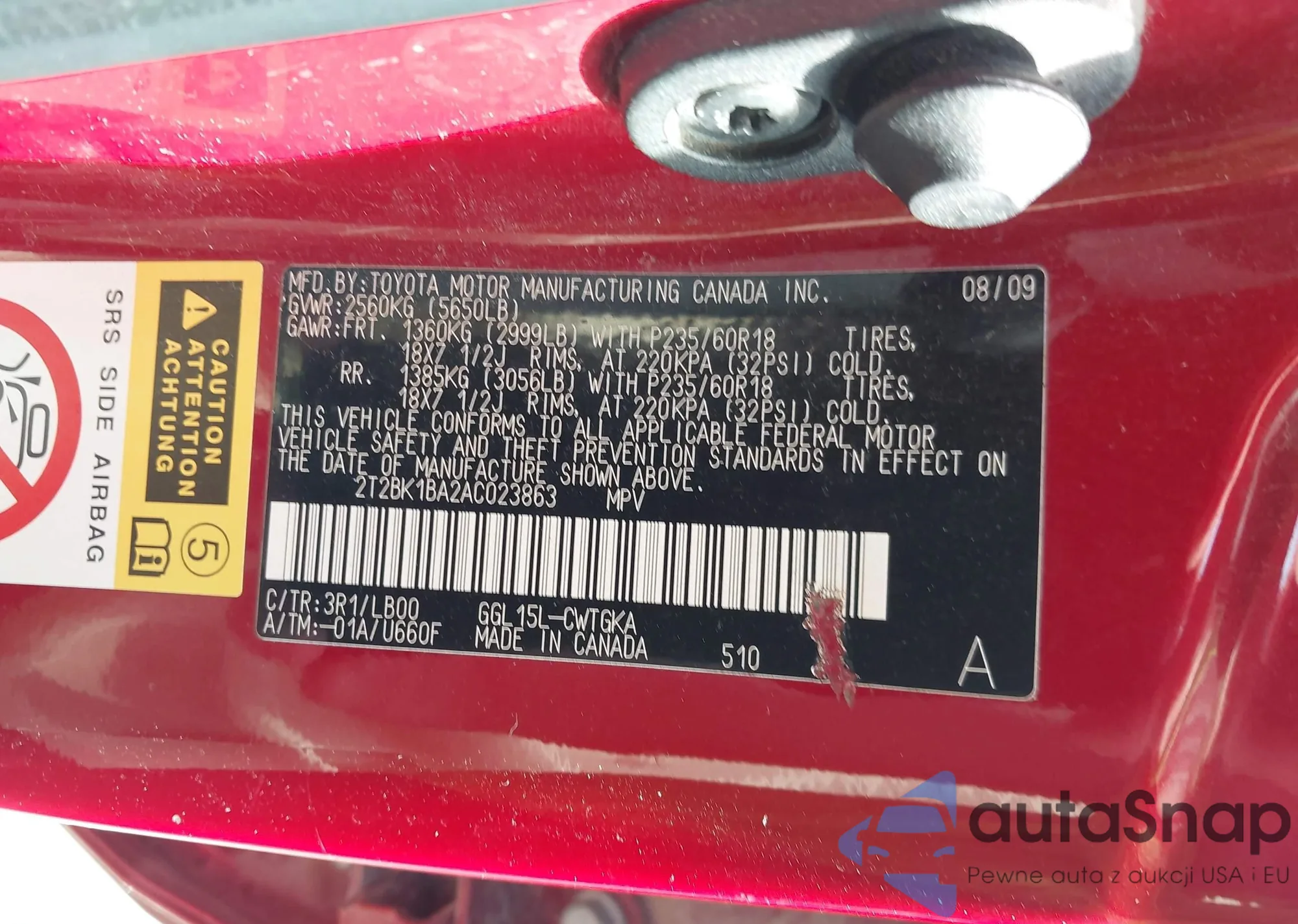 VIN: 2T2BK1BA2AC023863