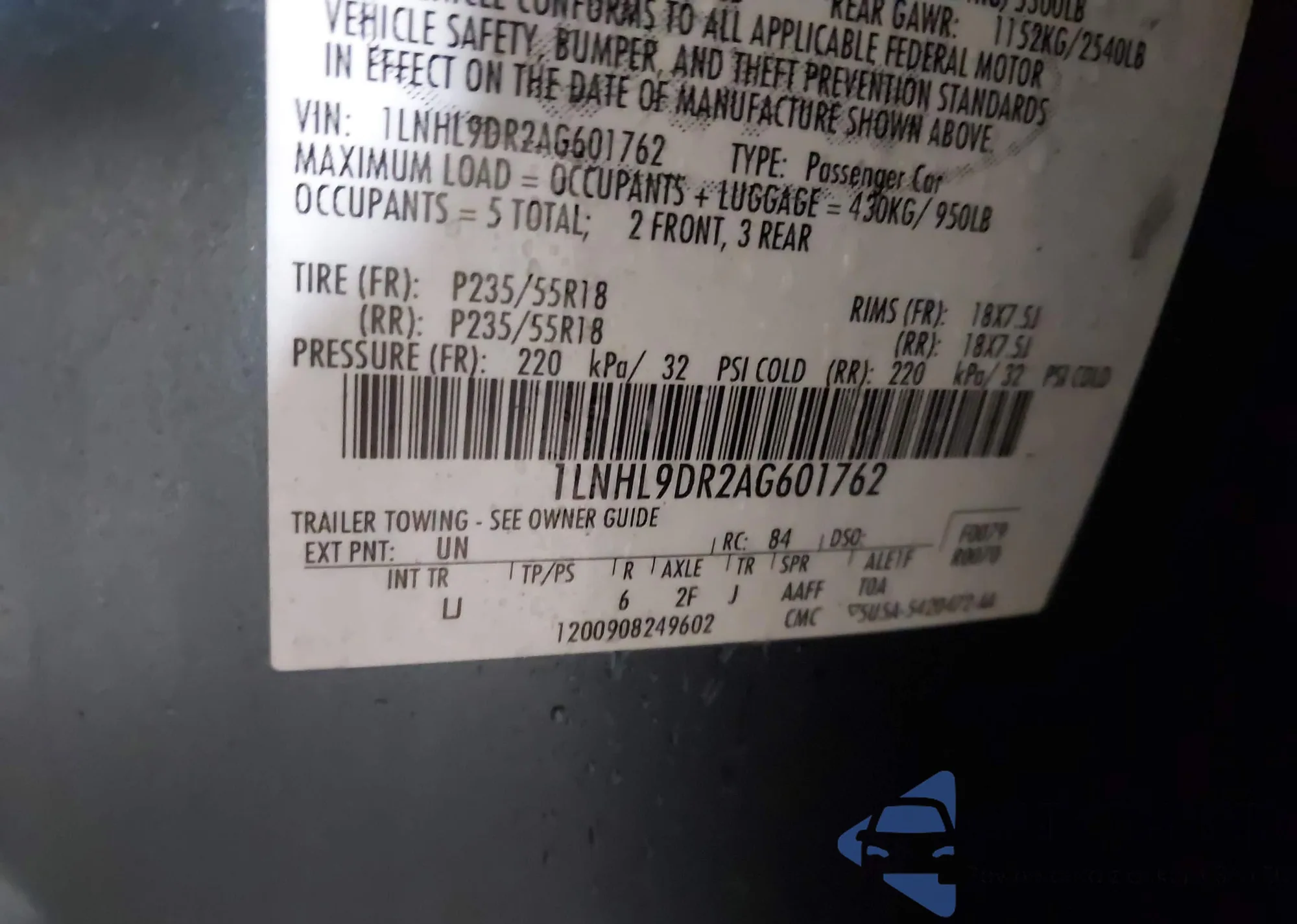 VIN: 1LNHL9DR2AG601762