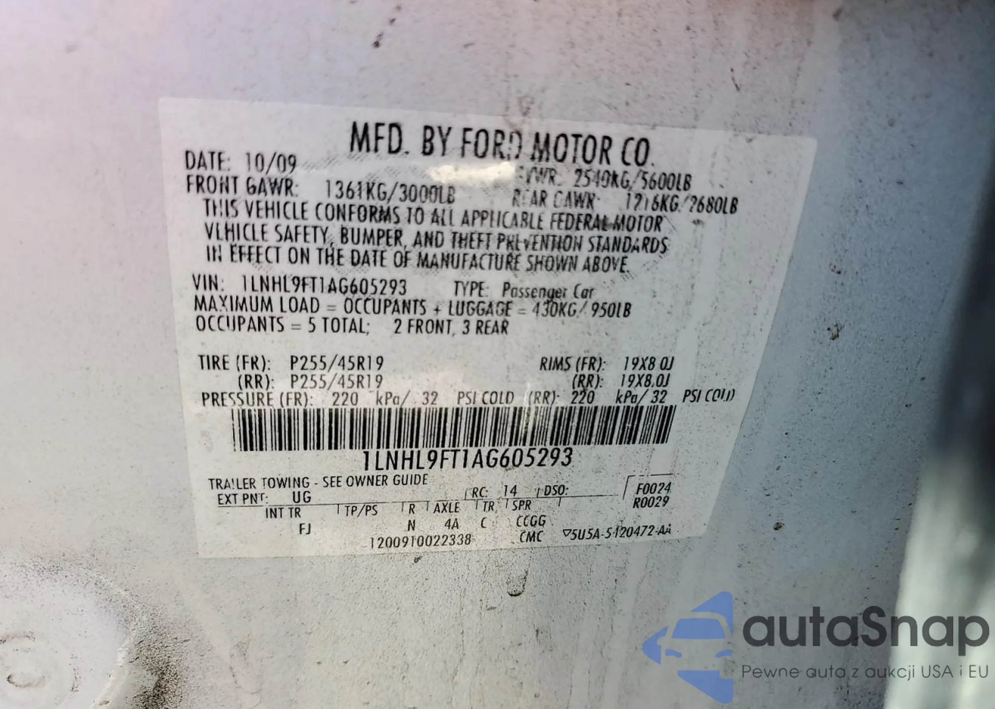 Автомобиль Lincoln MKS 2010 (VIN 1LNHL9FT1AG605293) ранее не участвовал в торгах. Документы чистые, пробег соответствует или ниже среднего по рынку. Продаётся страховой компанией — рекомендуем покупку. Доставка в порт займет около 6–8 недель.