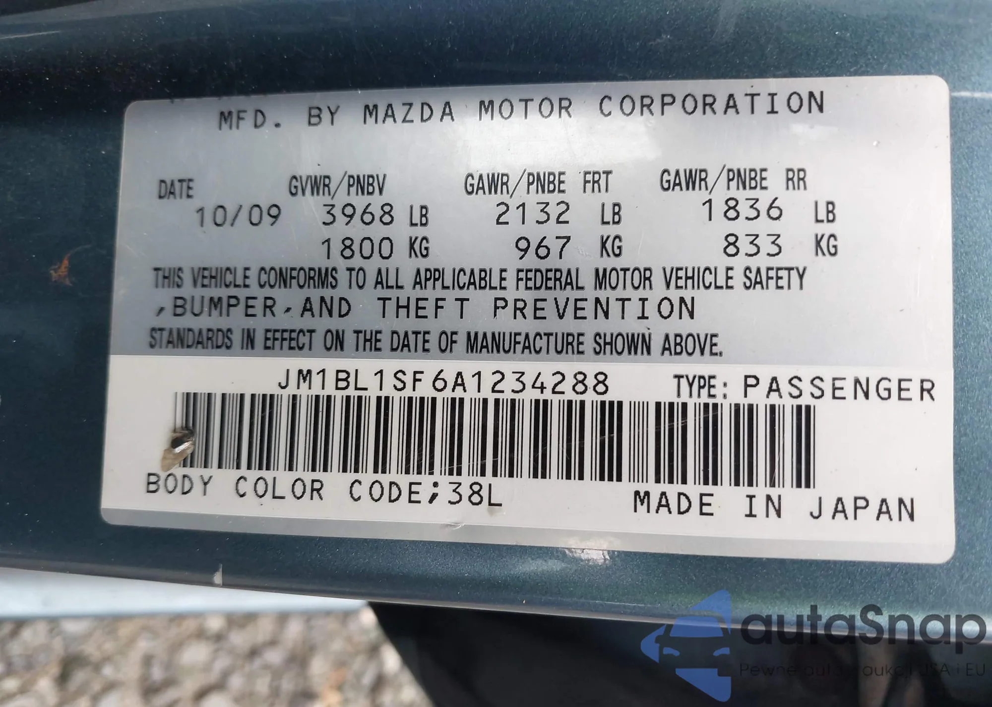 VIN: JM1BL1SF6A1234288