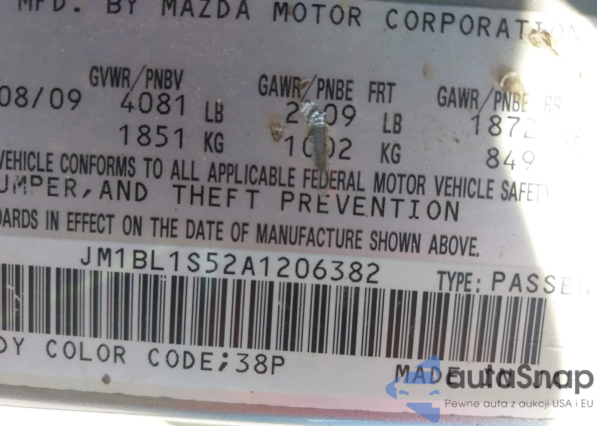 VIN: JM1BL1S52A1206382