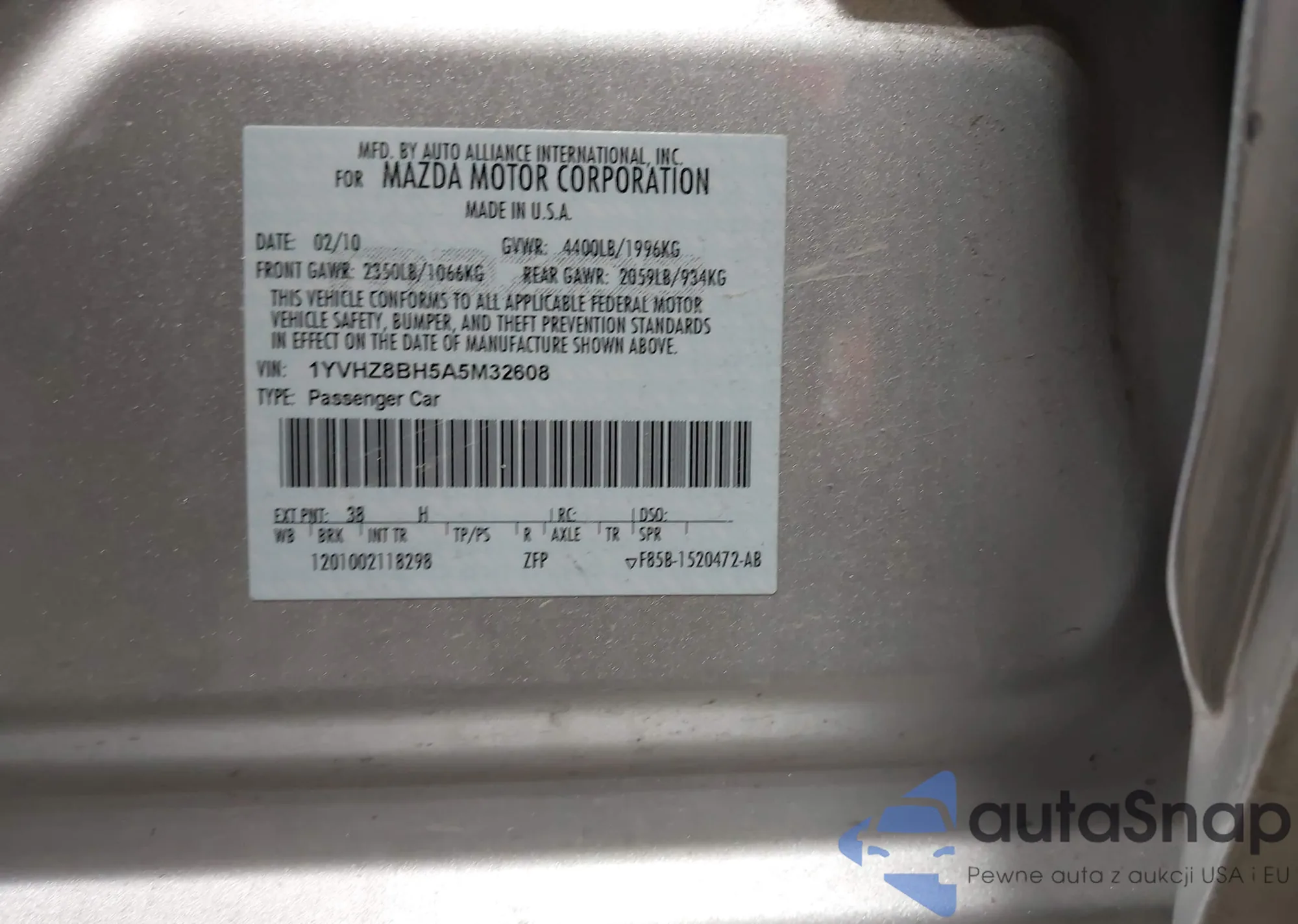VIN: 1YVHZ8BH5A5M32608