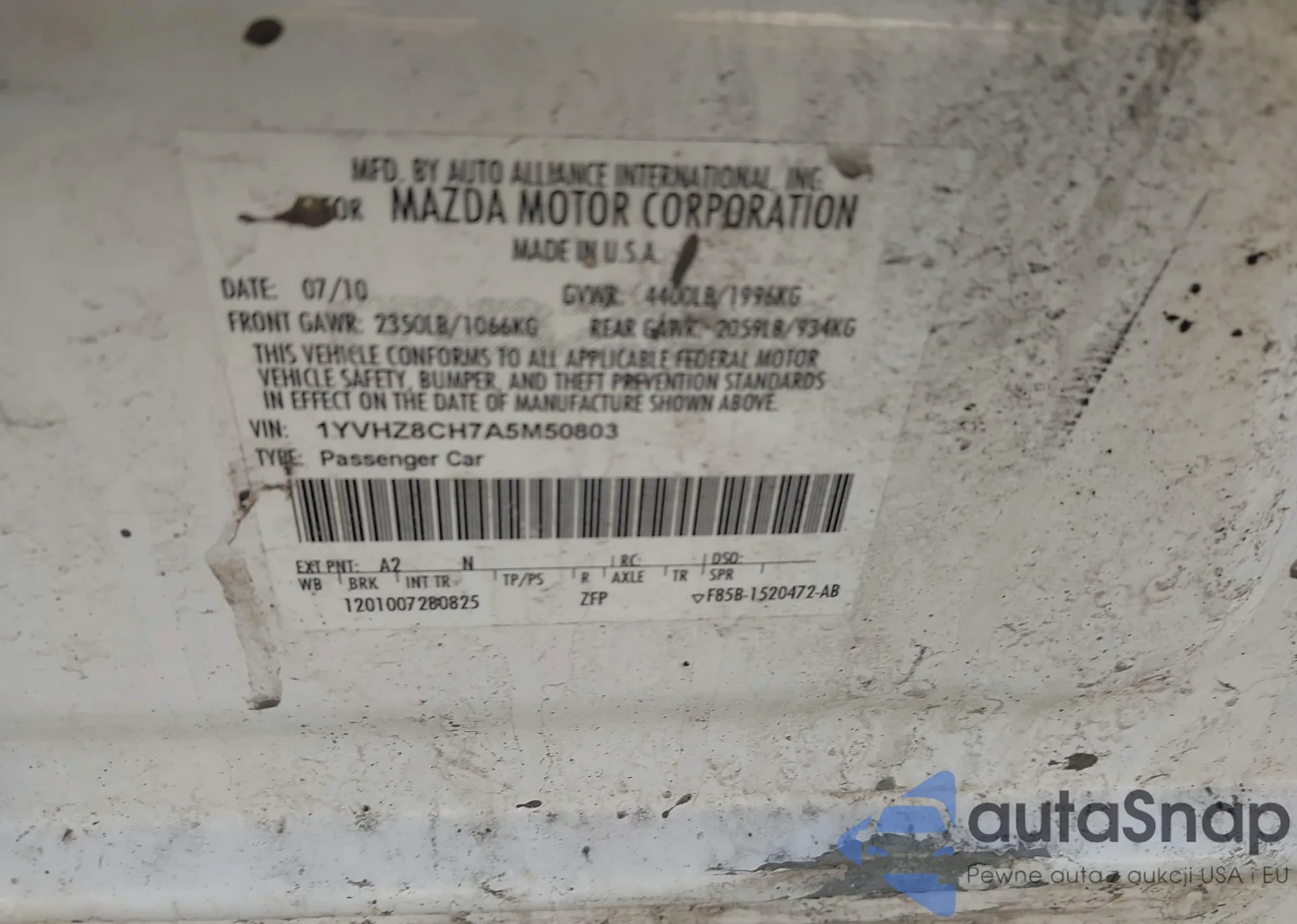 VIN: 1YVHZ8CH7A5M50803