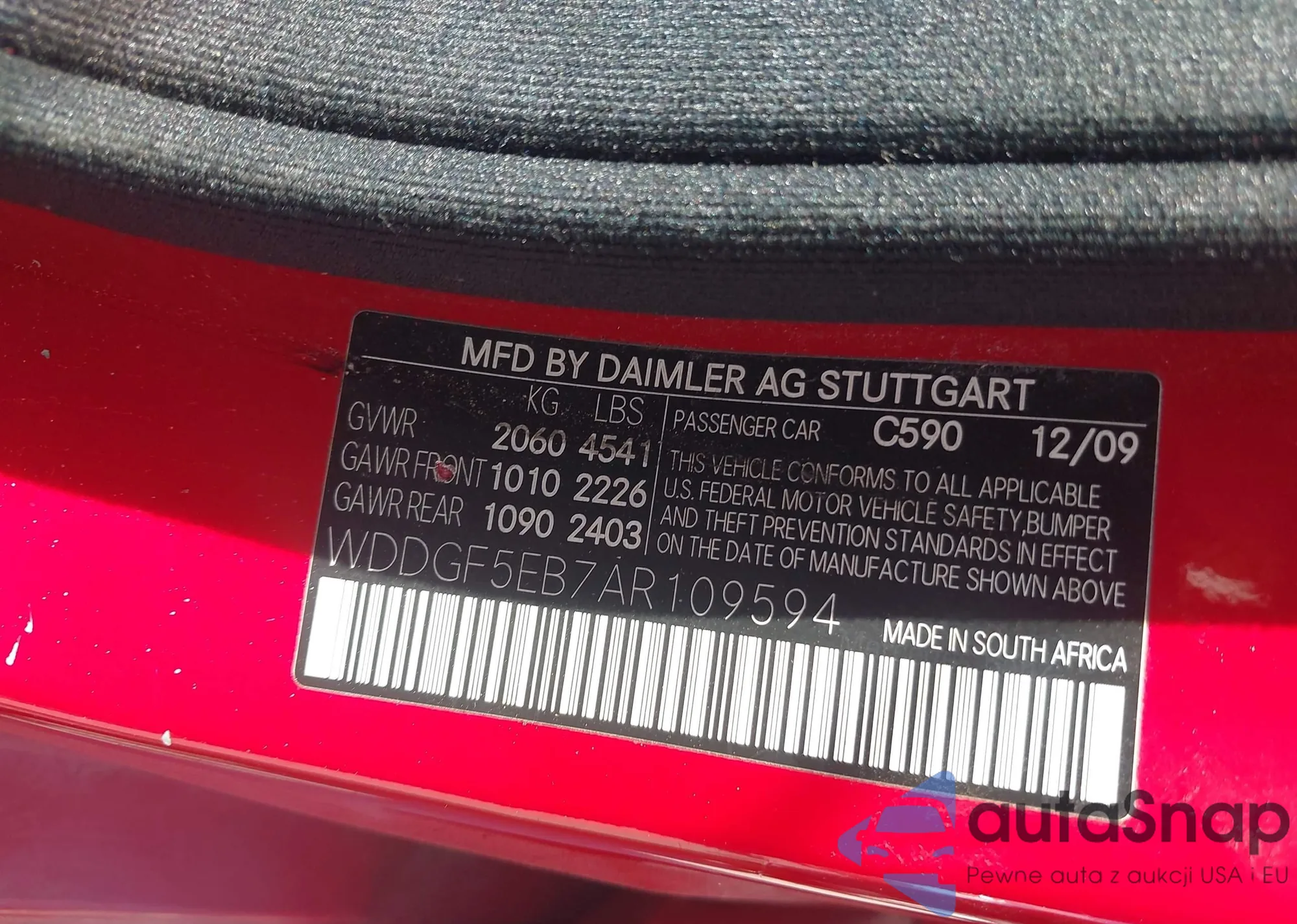 • VIN: WDDGF5EB7AR109594