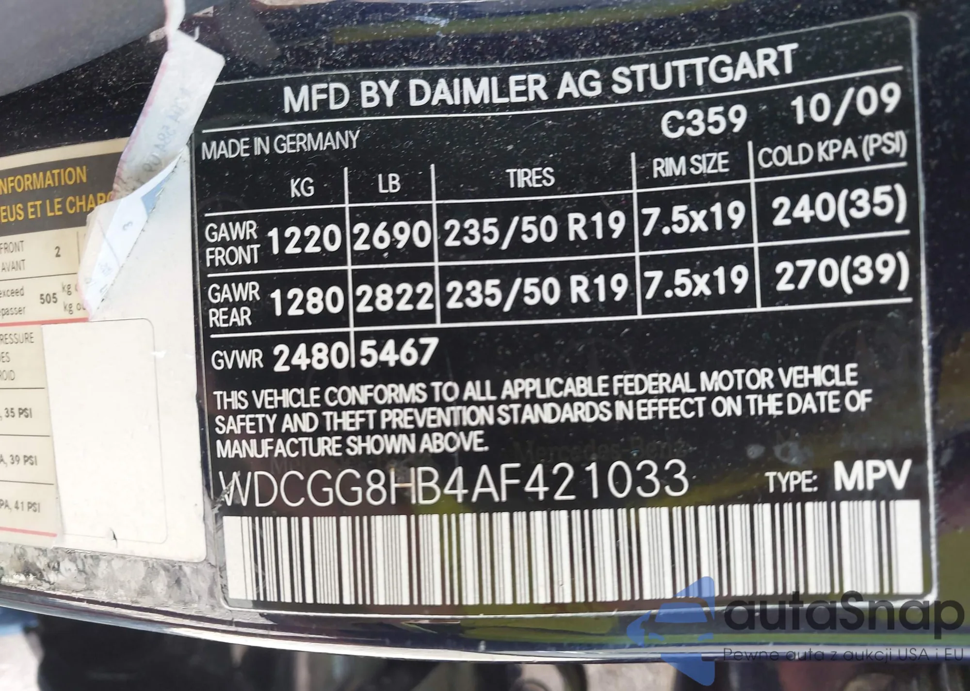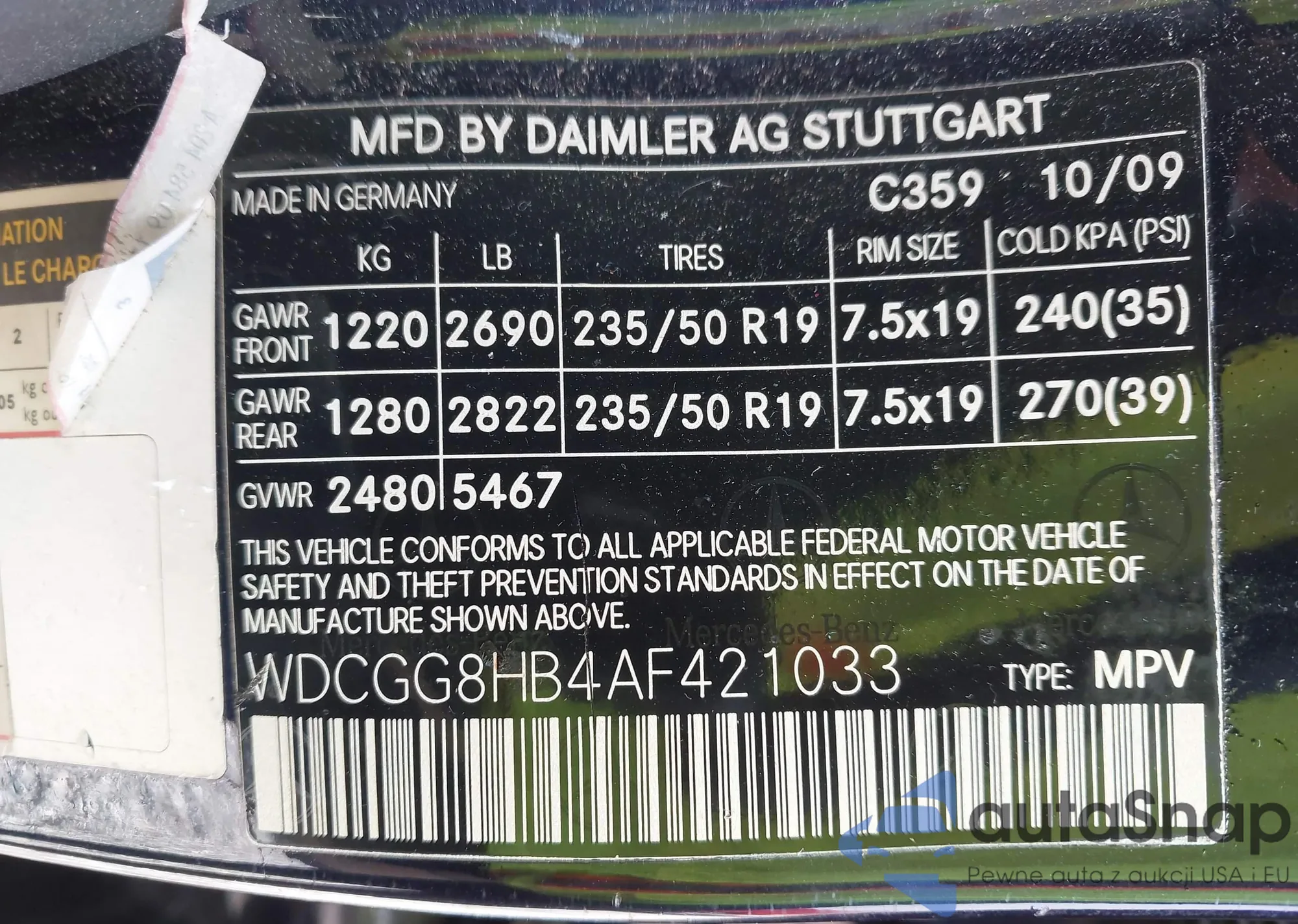 VIN: WDCGG8HB4AF421033