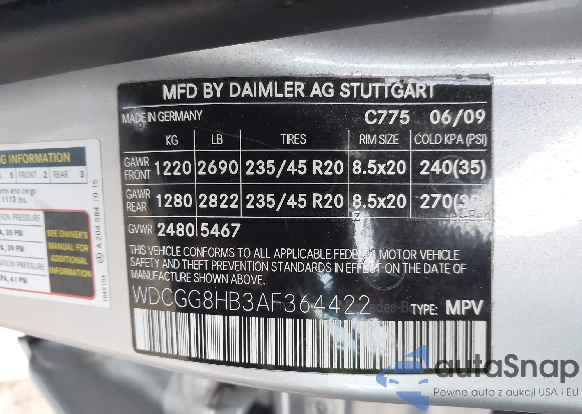 VIN: WDCGG8HB3AF364422
