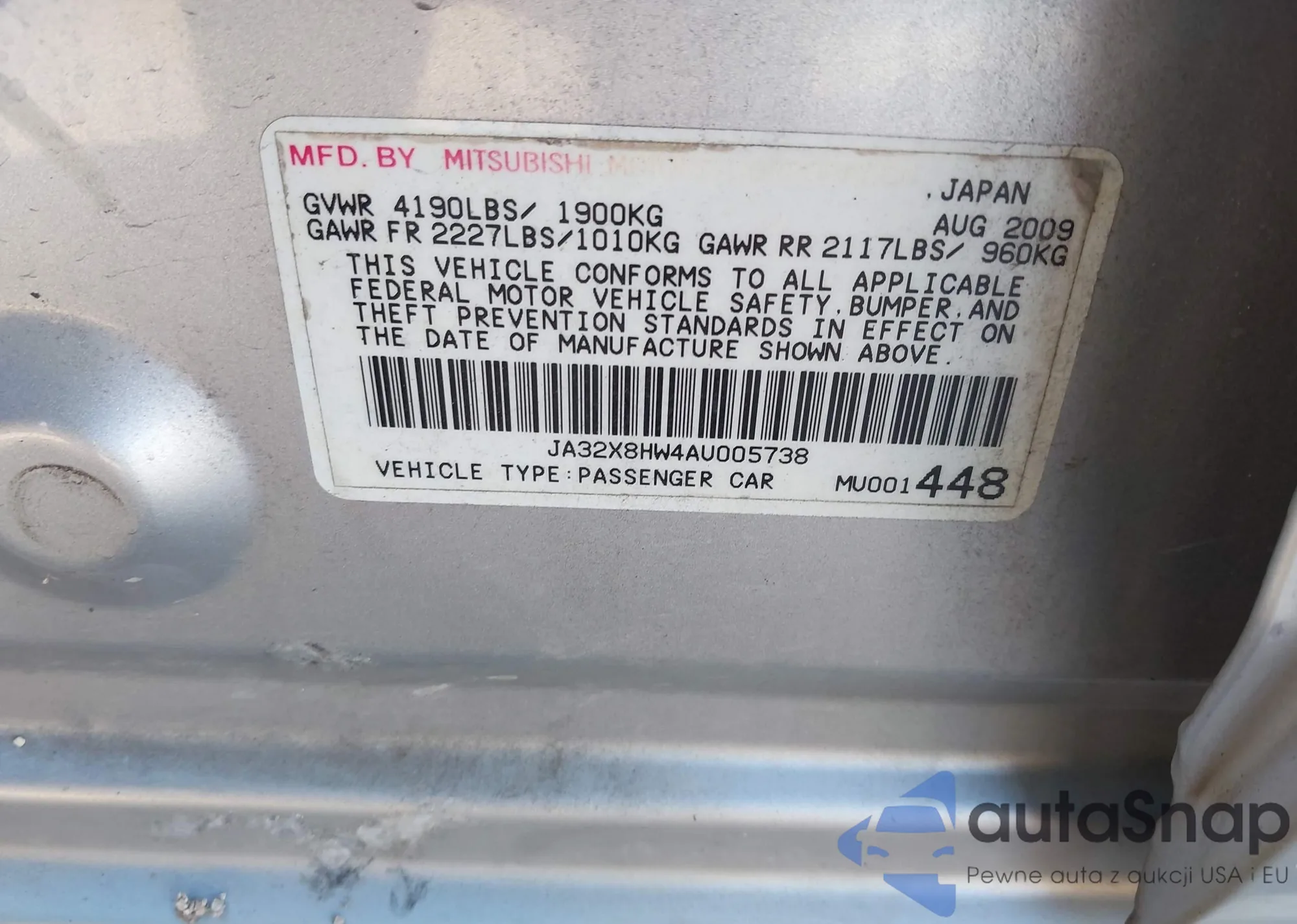 VIN: JA32X8HW4AU005738