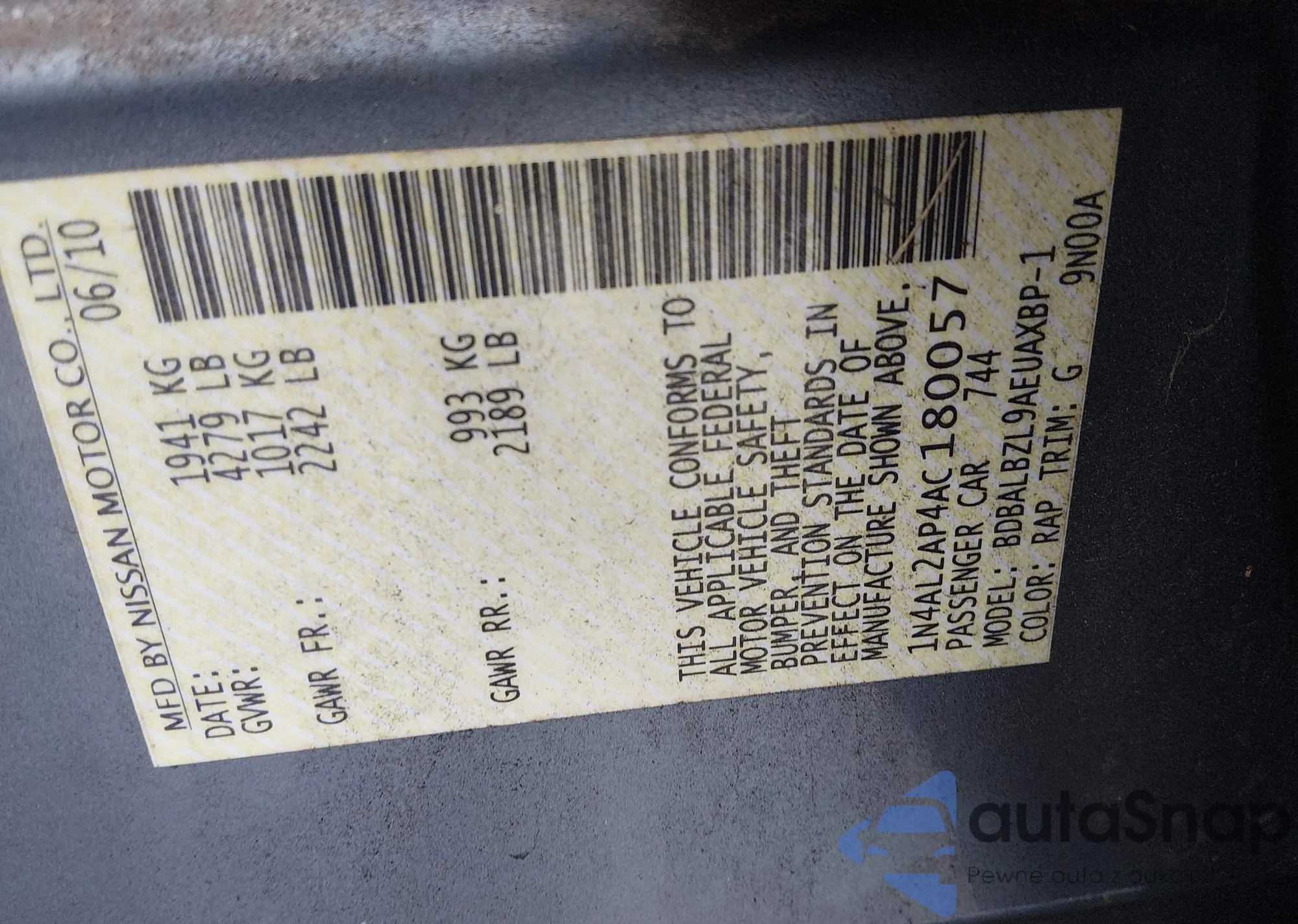 VIN: 1N4AL2AP4AC180057