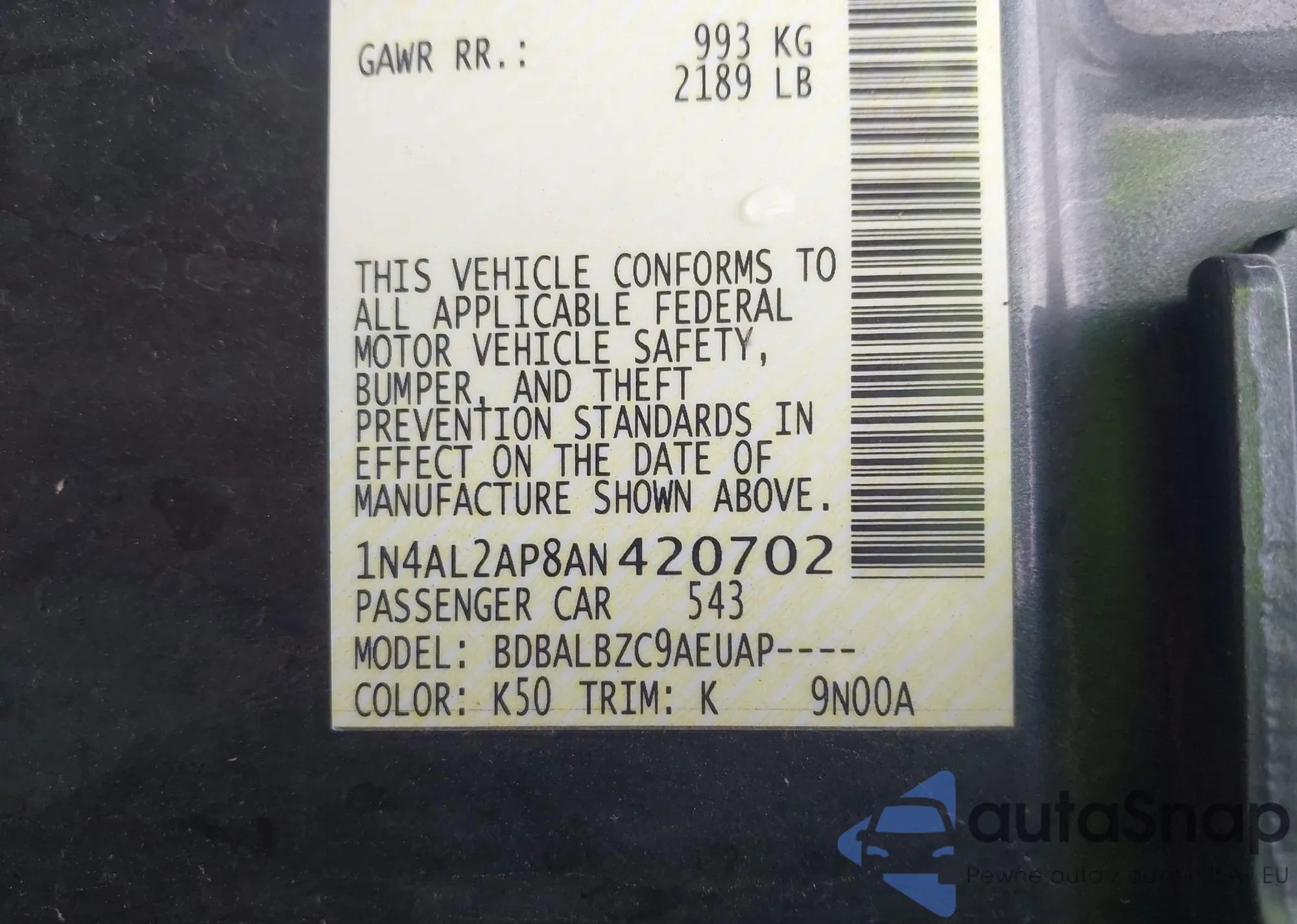 VIN: 1N4AL2AP8AN420702