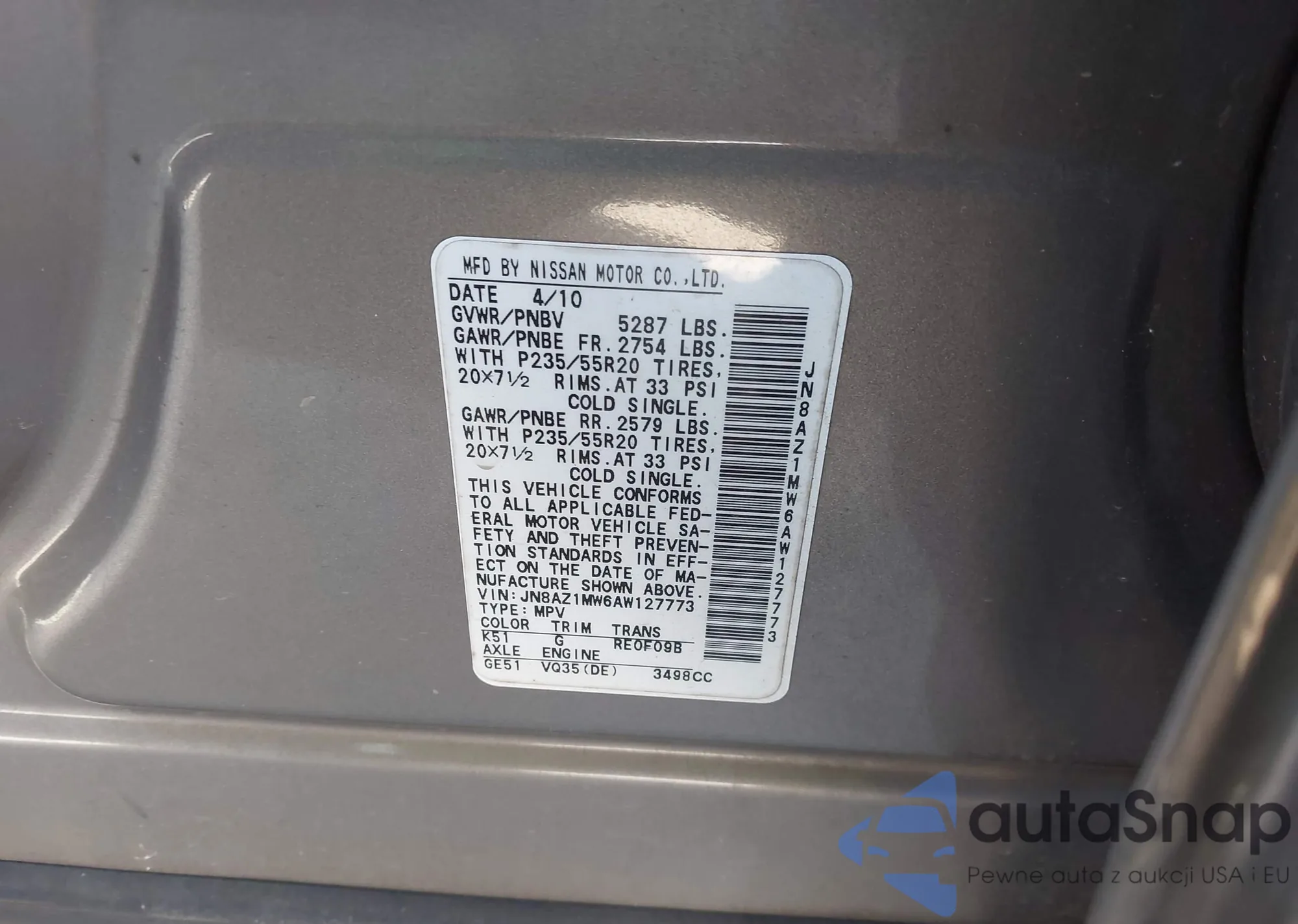 VIN: JN8AZ1MW6AW127773