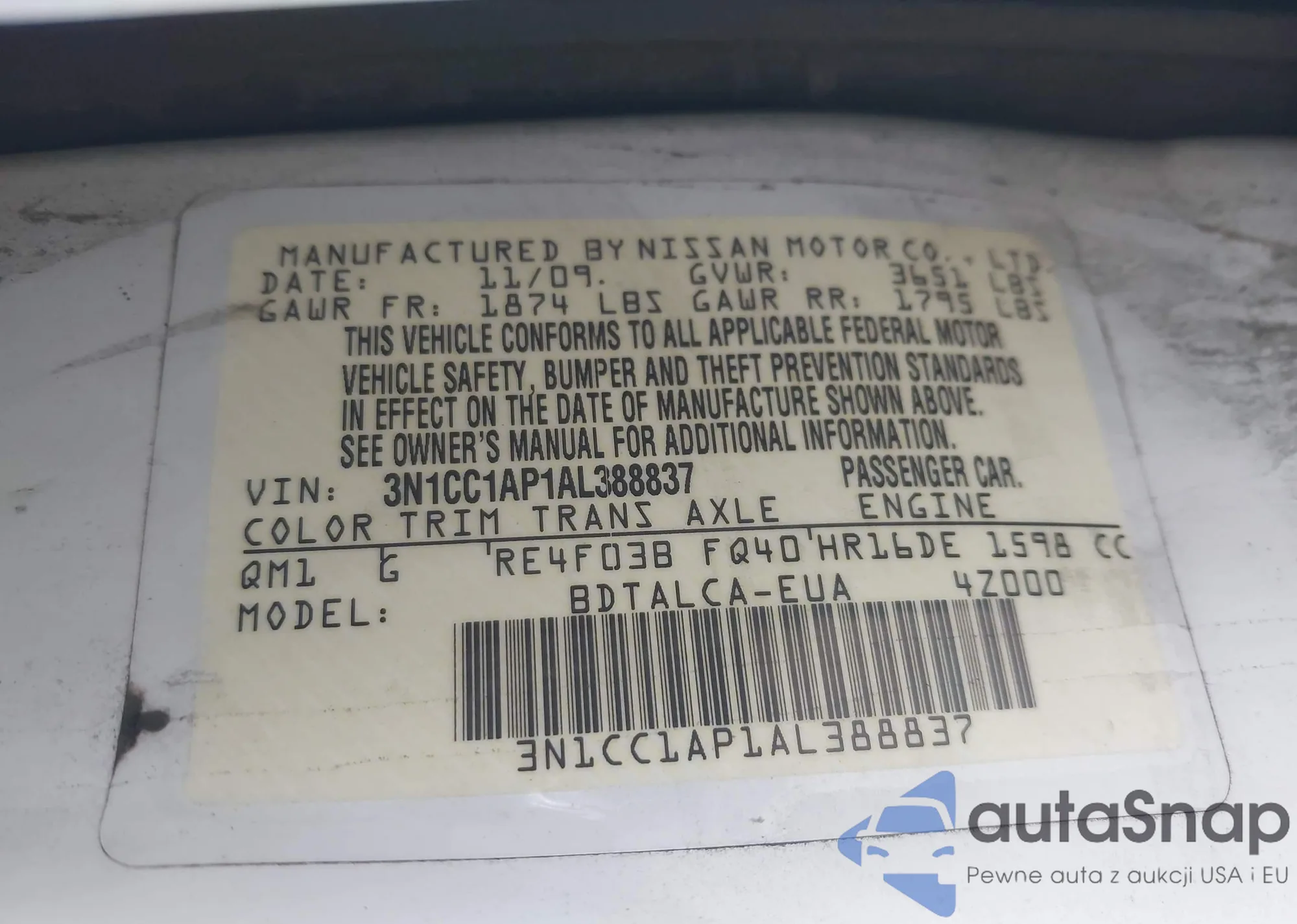 VIN: 3N1CC1AP1AL388837