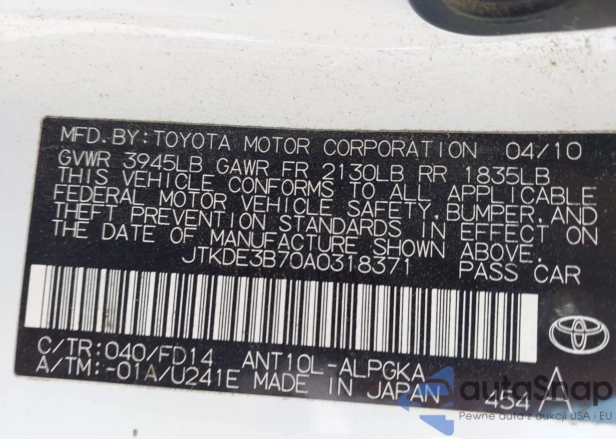 VIN: JTKDE3B70A0318371