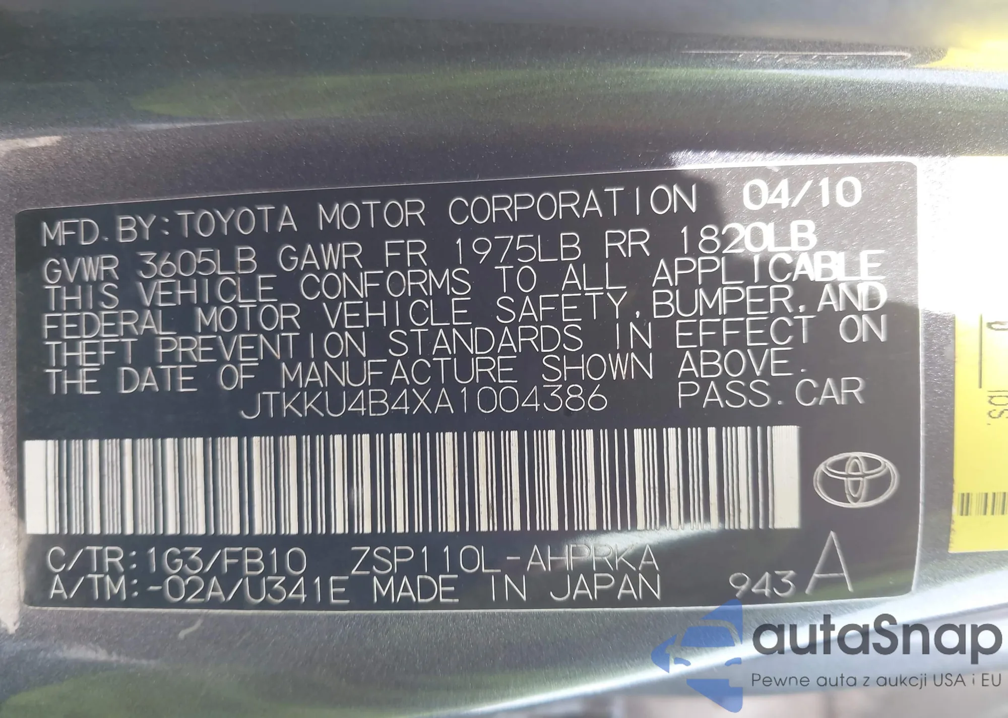 VIN: JTKKU4B4XA1004386
