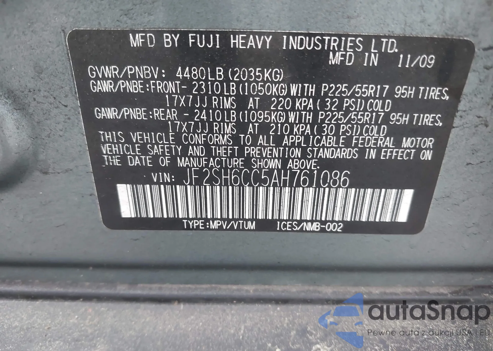 VIN: JF2SH6CC5AH761086