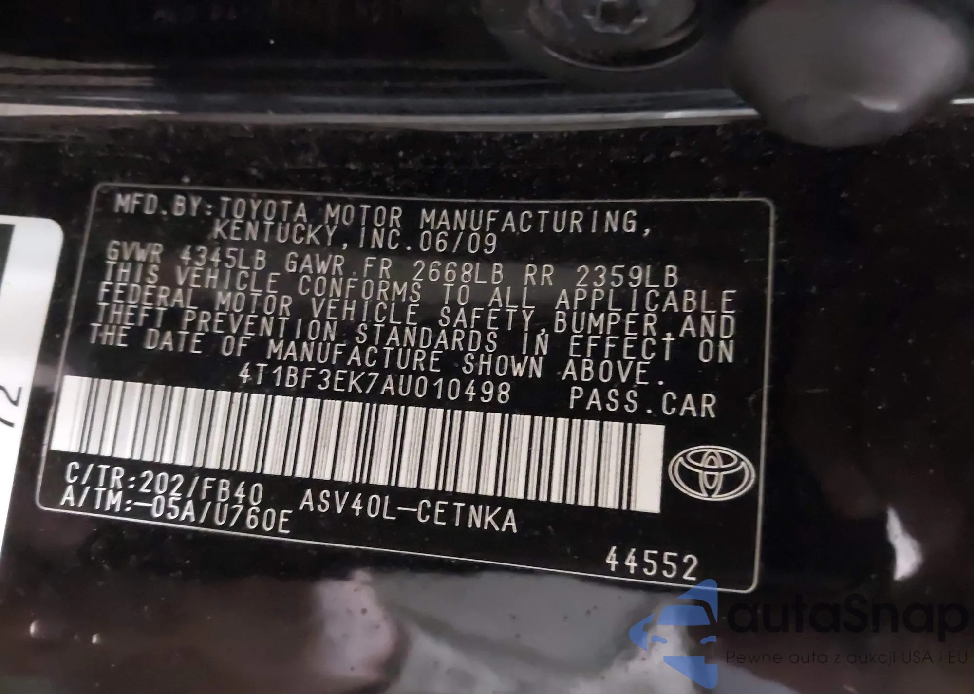 VIN: 4T1BF3EK7AU010498