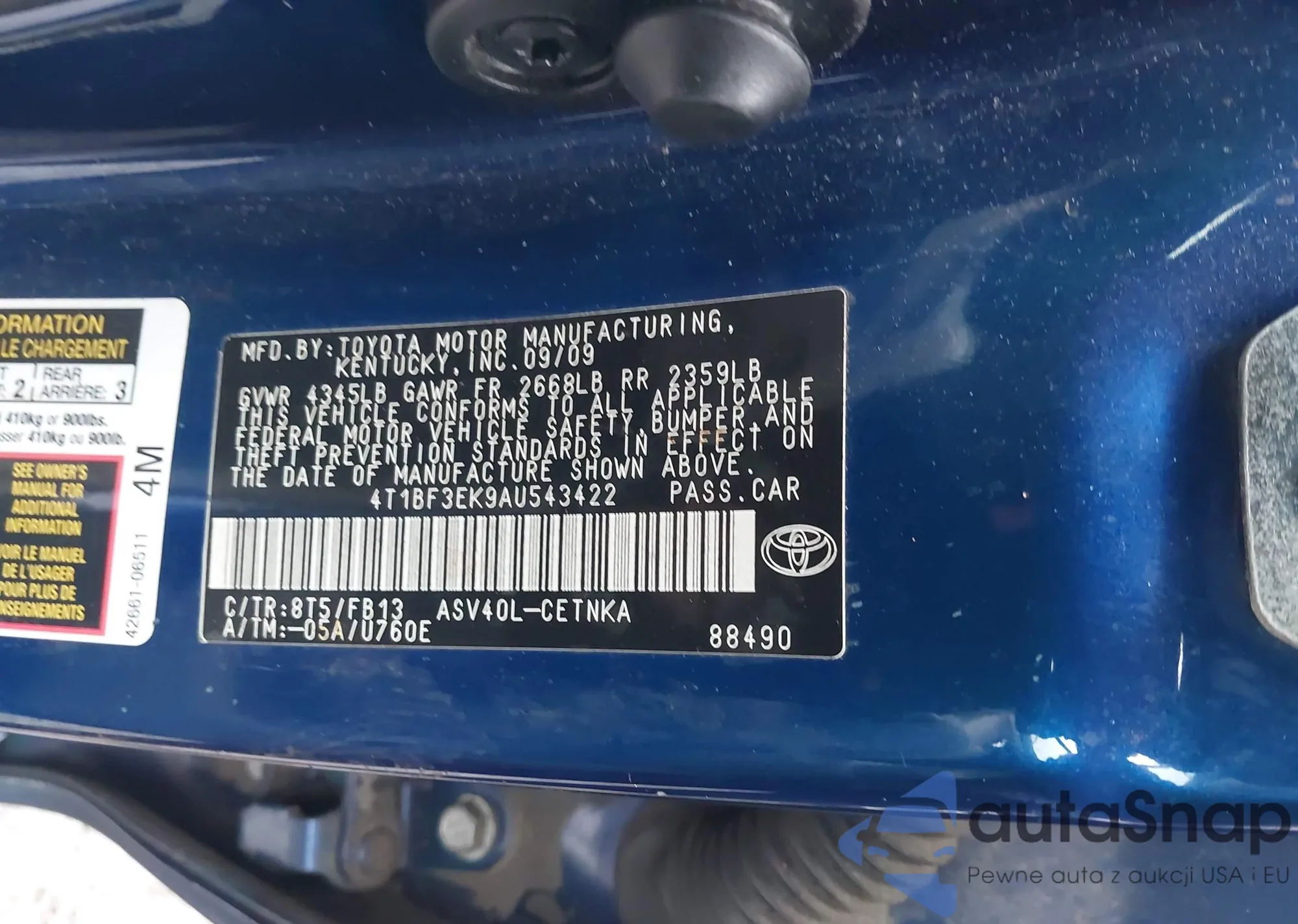VIN: 4T1BF3EK9AU543422