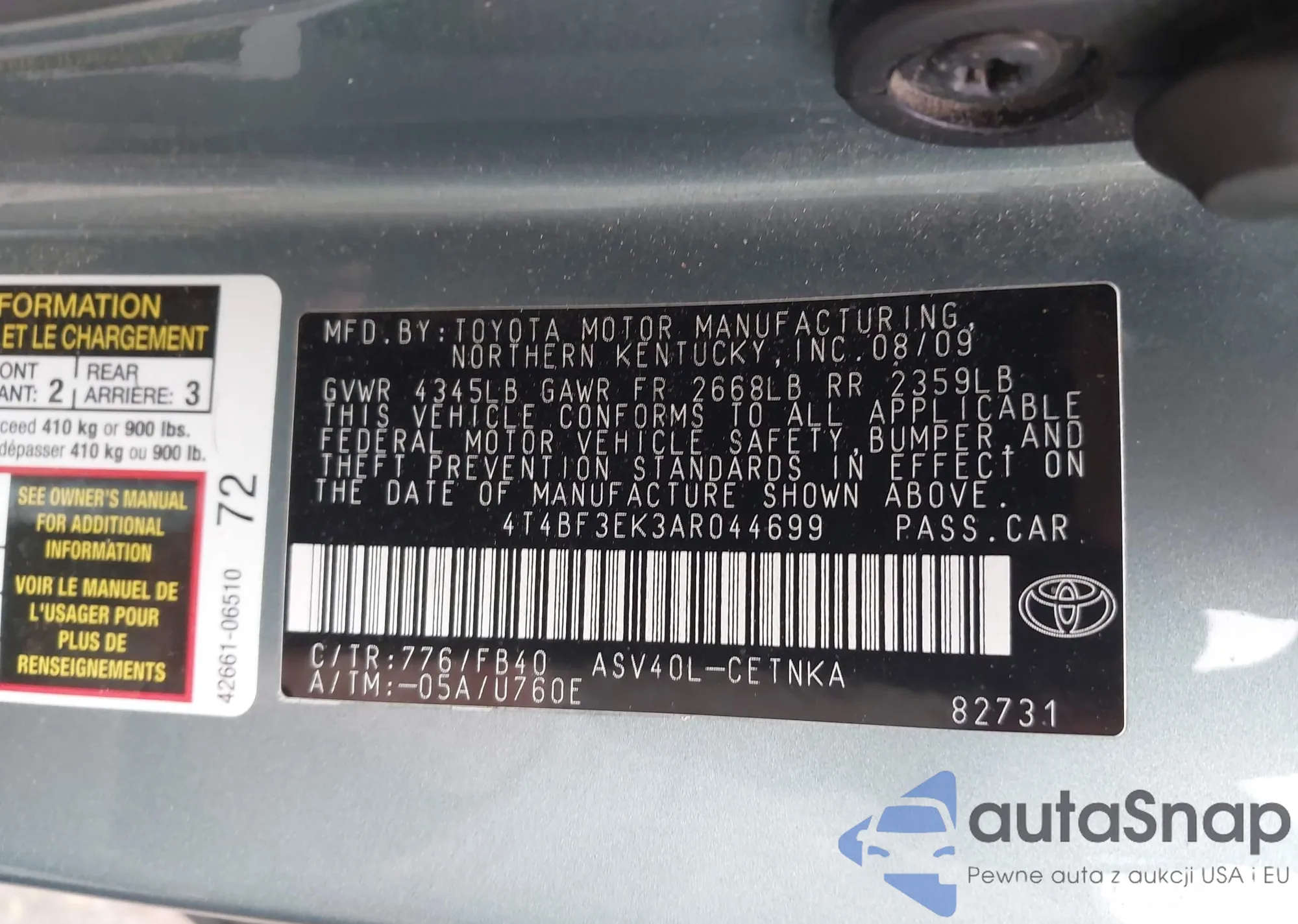 VIN: 4T4BF3EK3AR044699