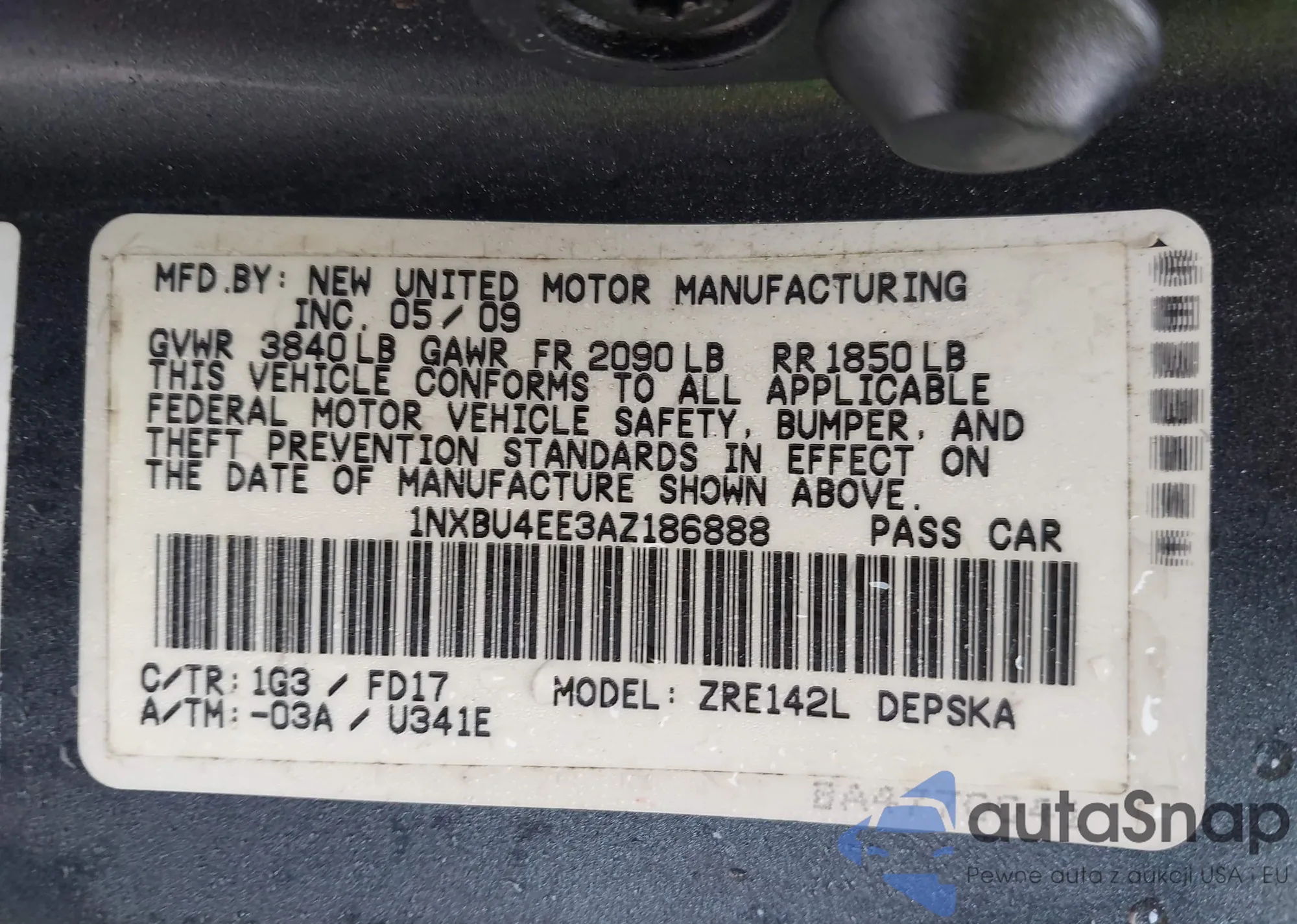 VIN: 1NXBU4EE3AZ186888