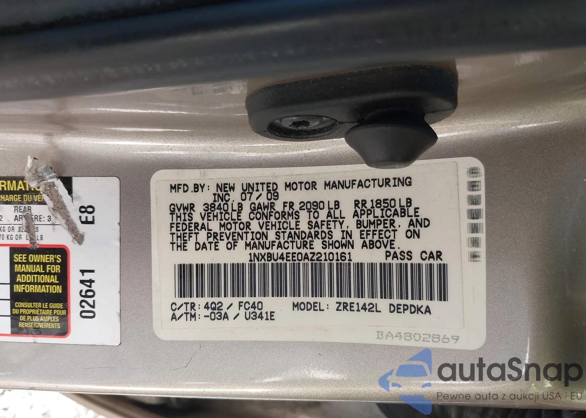 VIN: 1NXBU4EE0AZ210161