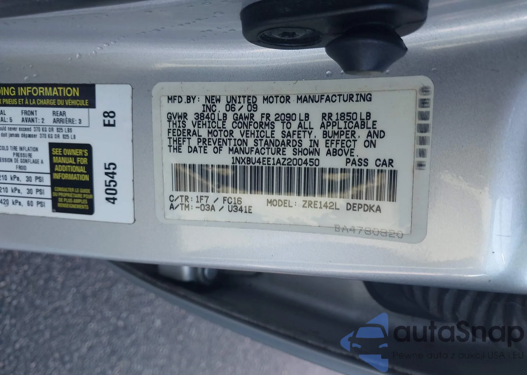 VIN: 1NXBU4EE1AZ200450