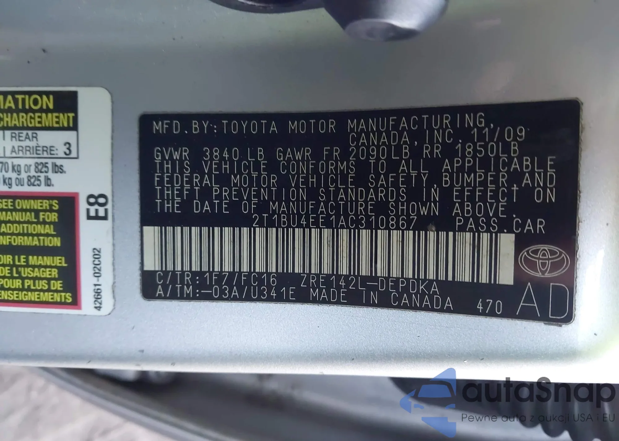 Автомобиль Toyota Corolla 2010 (VIN 2T1BU4EE1AC310867) ранее не участвовал в торгах. Документы чистые, пробег соответствует или ниже среднего по рынку. Продаётся страховой компанией — рекомендуем покупку. Доставка в порт займет около 6–8 недель.