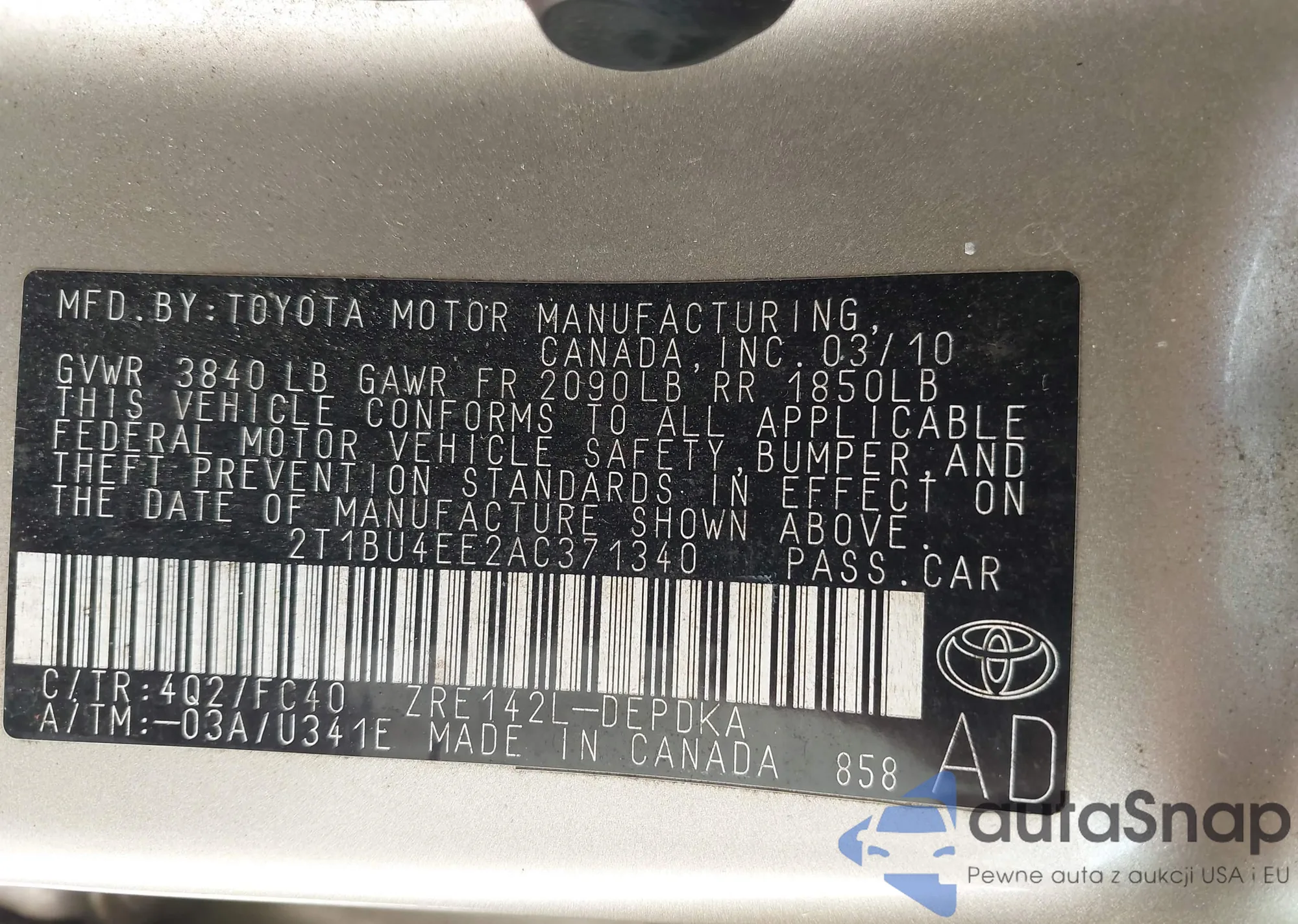 VIN: 2T1BU4EE2AC371340