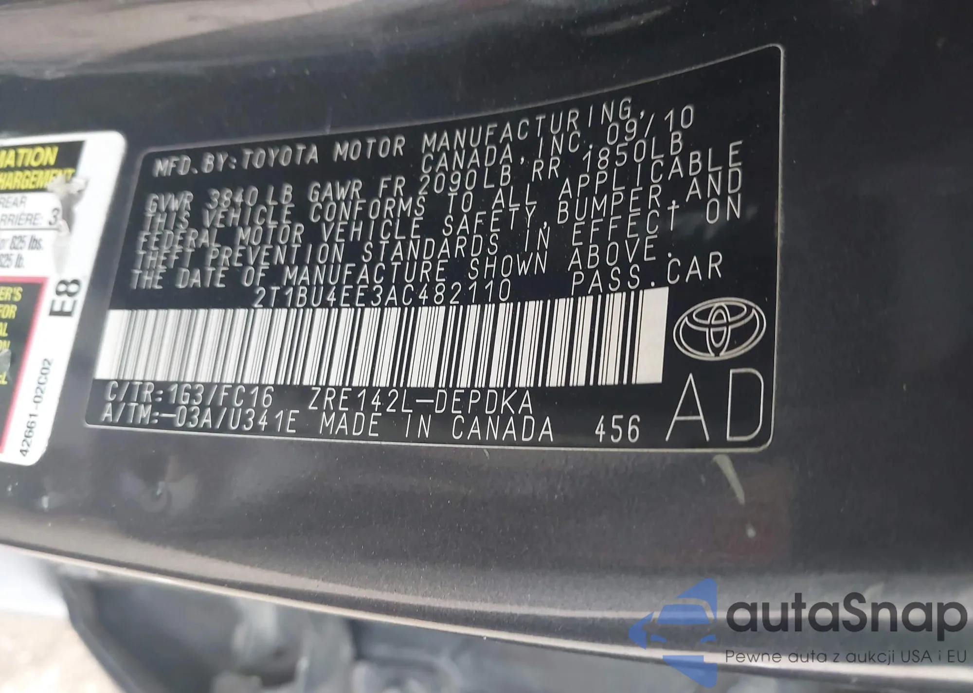 Автомобиль Toyota Corolla 2010 (VIN 2T1BU4EE3AC482110) ранее не участвовал в торгах. Документы чистые, пробег соответствует или ниже среднего по рынку. Продаётся страховой компанией — рекомендуем покупку. Доставка в порт займет около 6–8 недель.