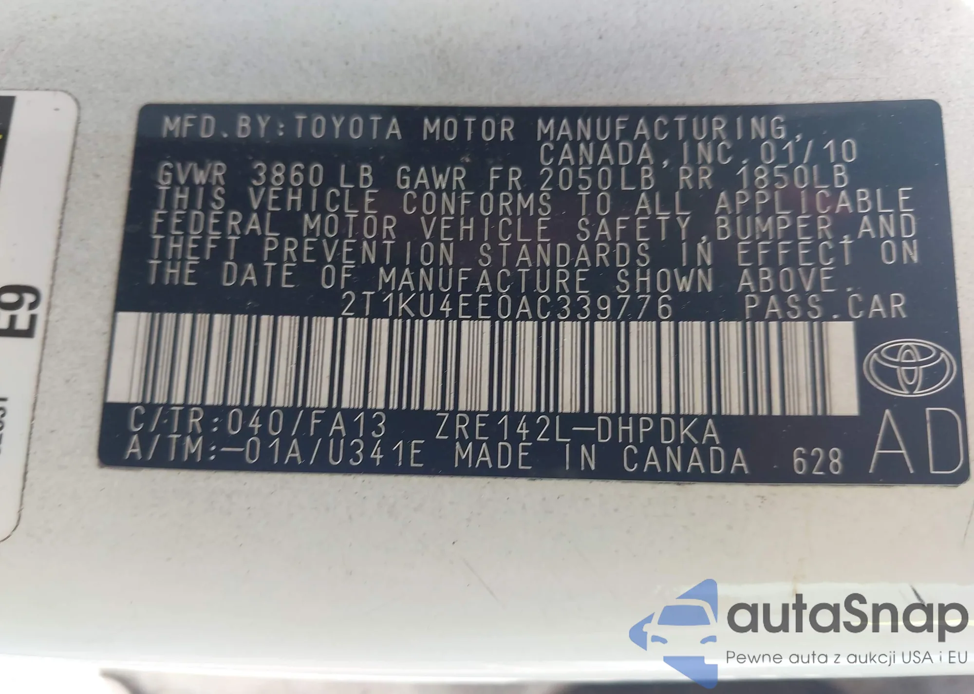 VIN: 2T1KU4EE0AC339776