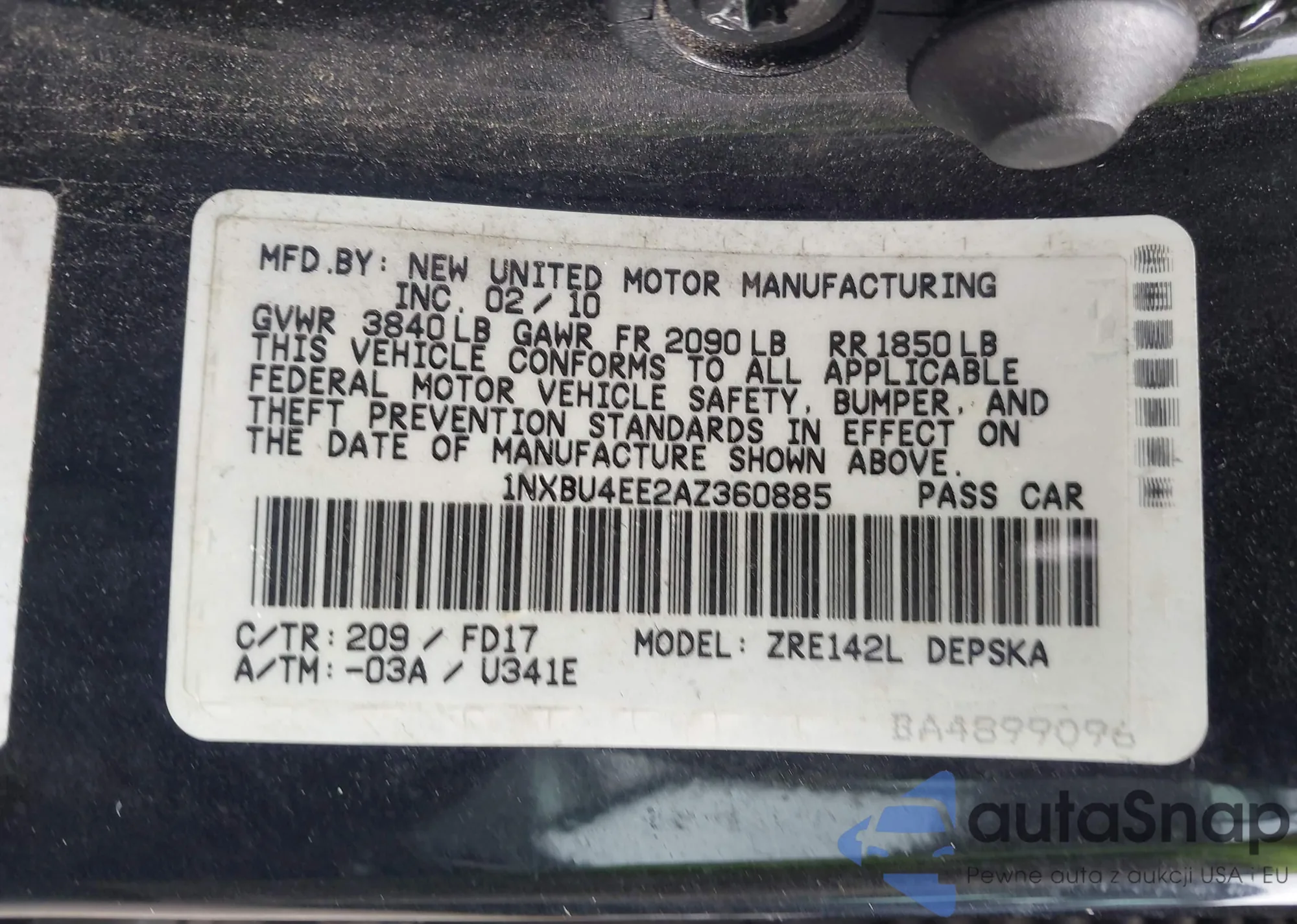 VIN: 1NXBU4EE2AZ360885