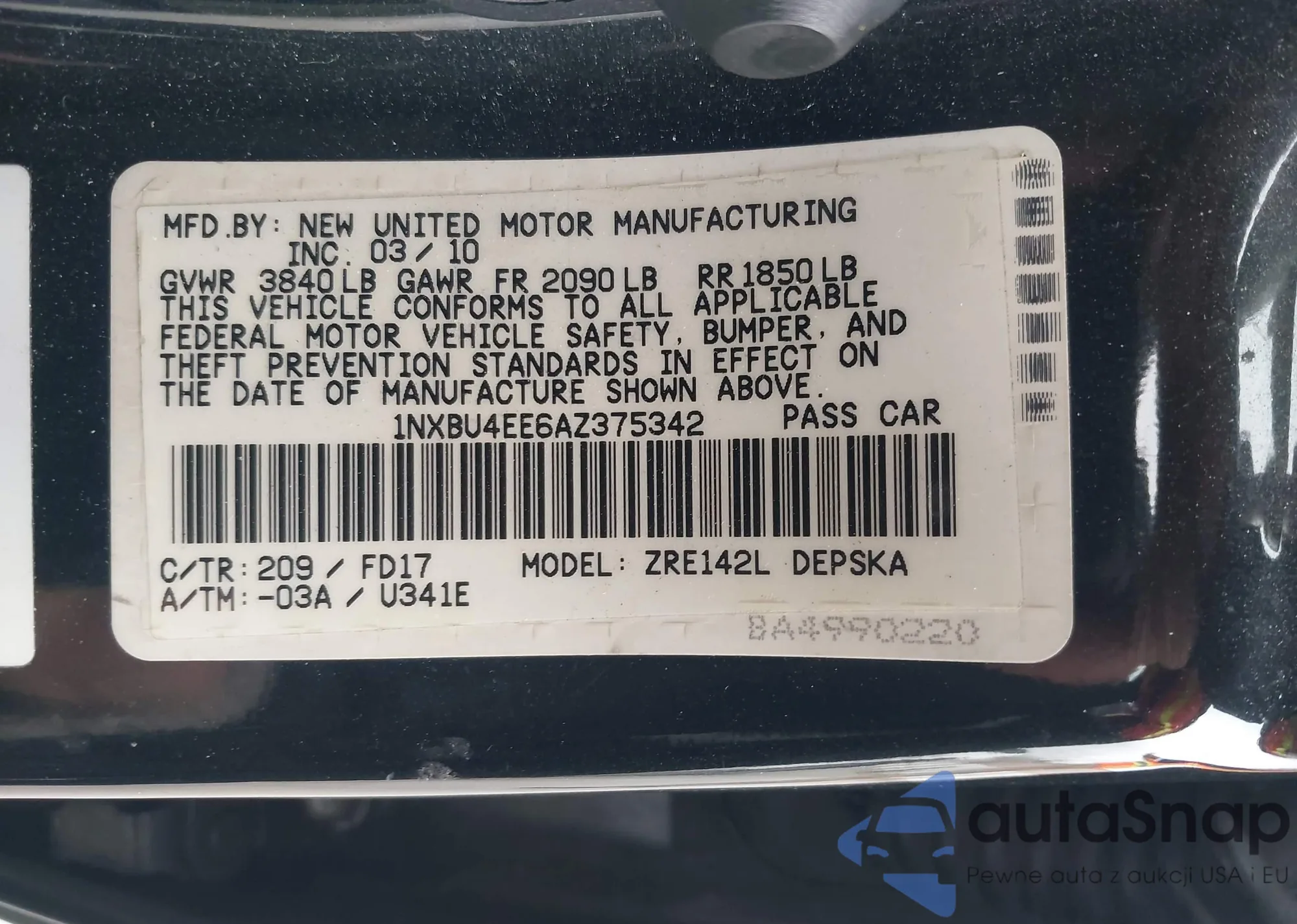 VIN: 1NXBU4EE6AZ375342