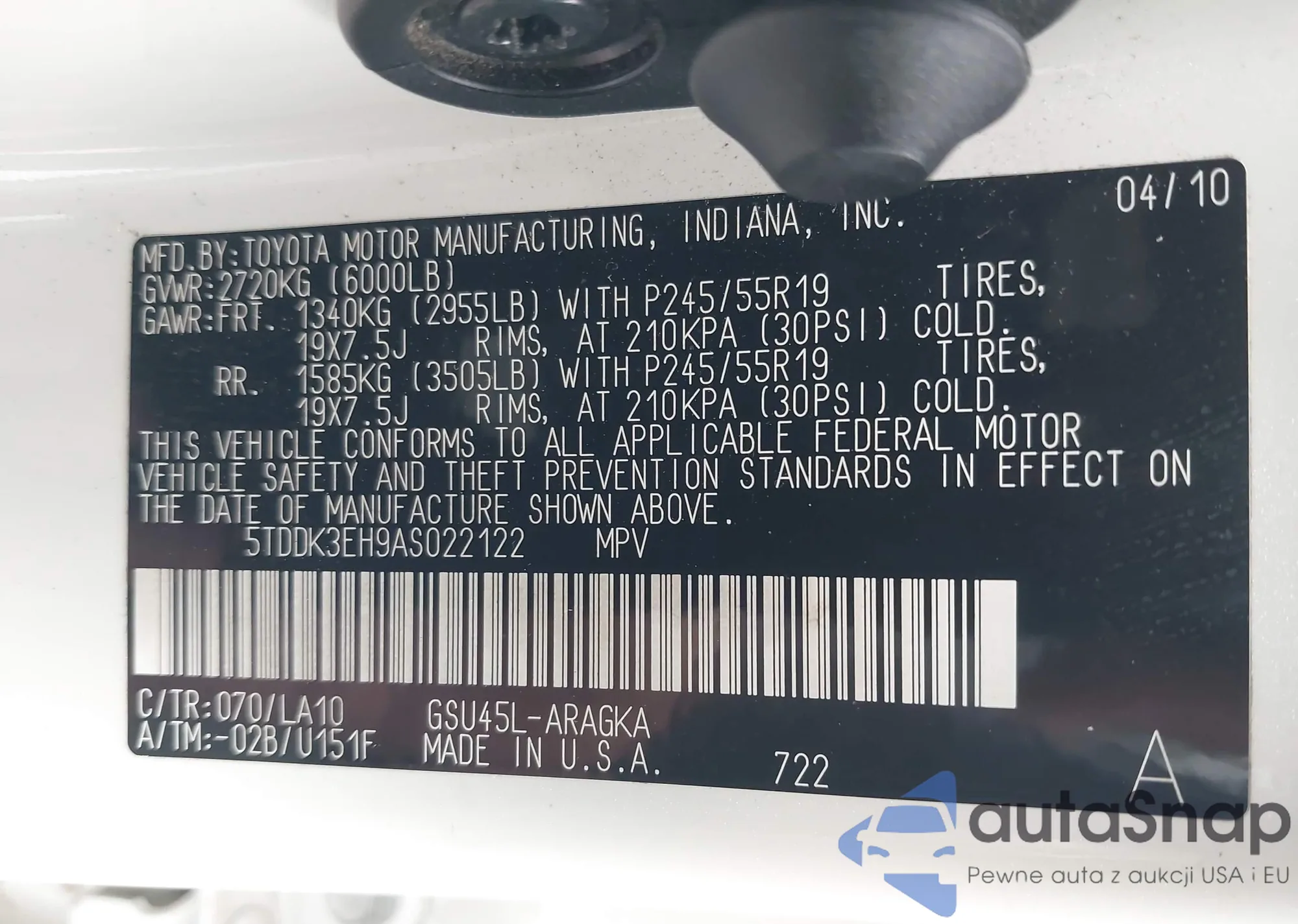VIN: 5TDDK3EH9AS022122