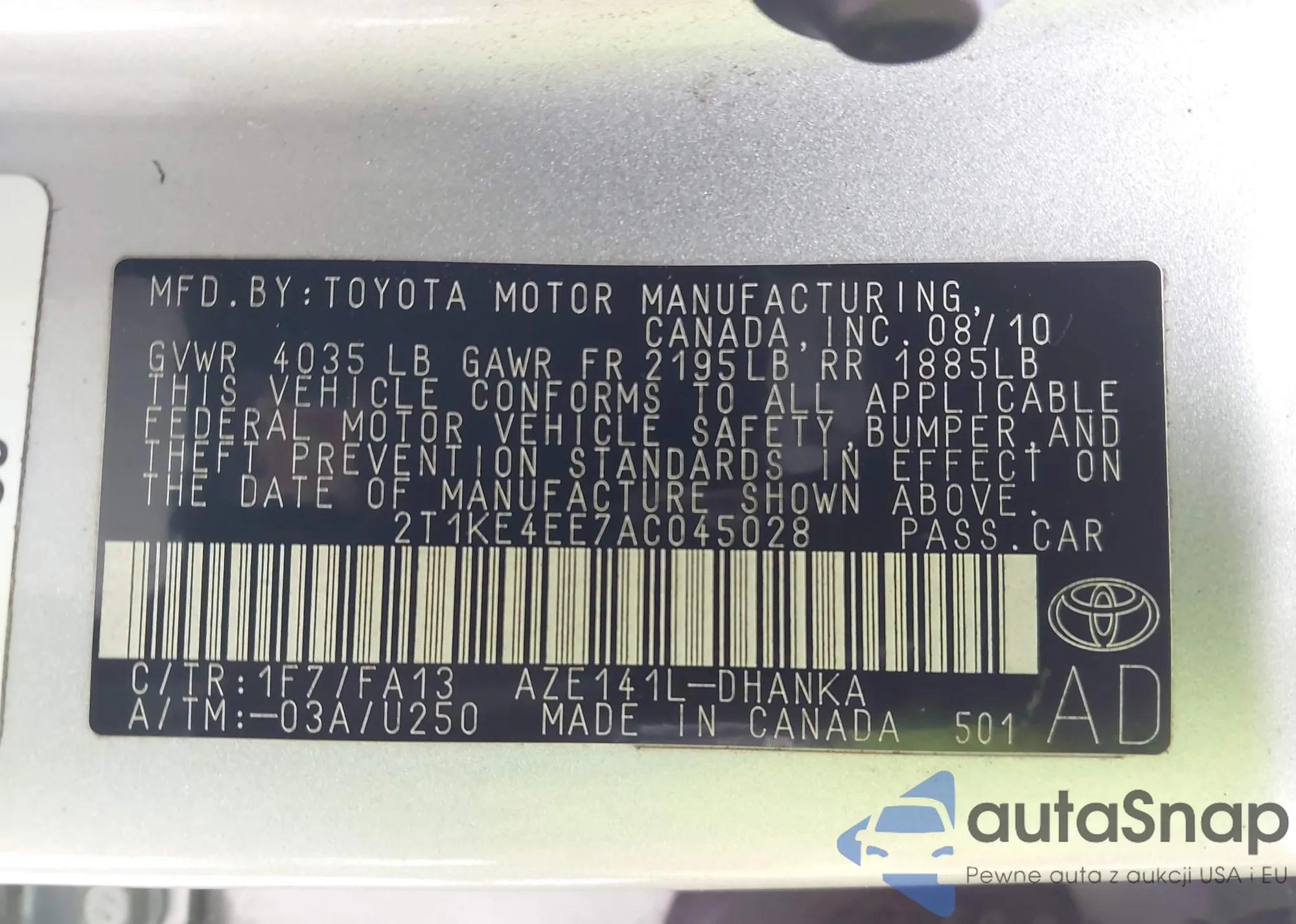 Автомобиль Toyota Matrix 2010 (VIN 2T1KE4EE7AC045028) ранее не участвовал в торгах. Документы чистые, пробег соответствует или ниже среднего по рынку. Продаётся страховой компанией — рекомендуем покупку. Доставка в порт займет около 6–8 недель.