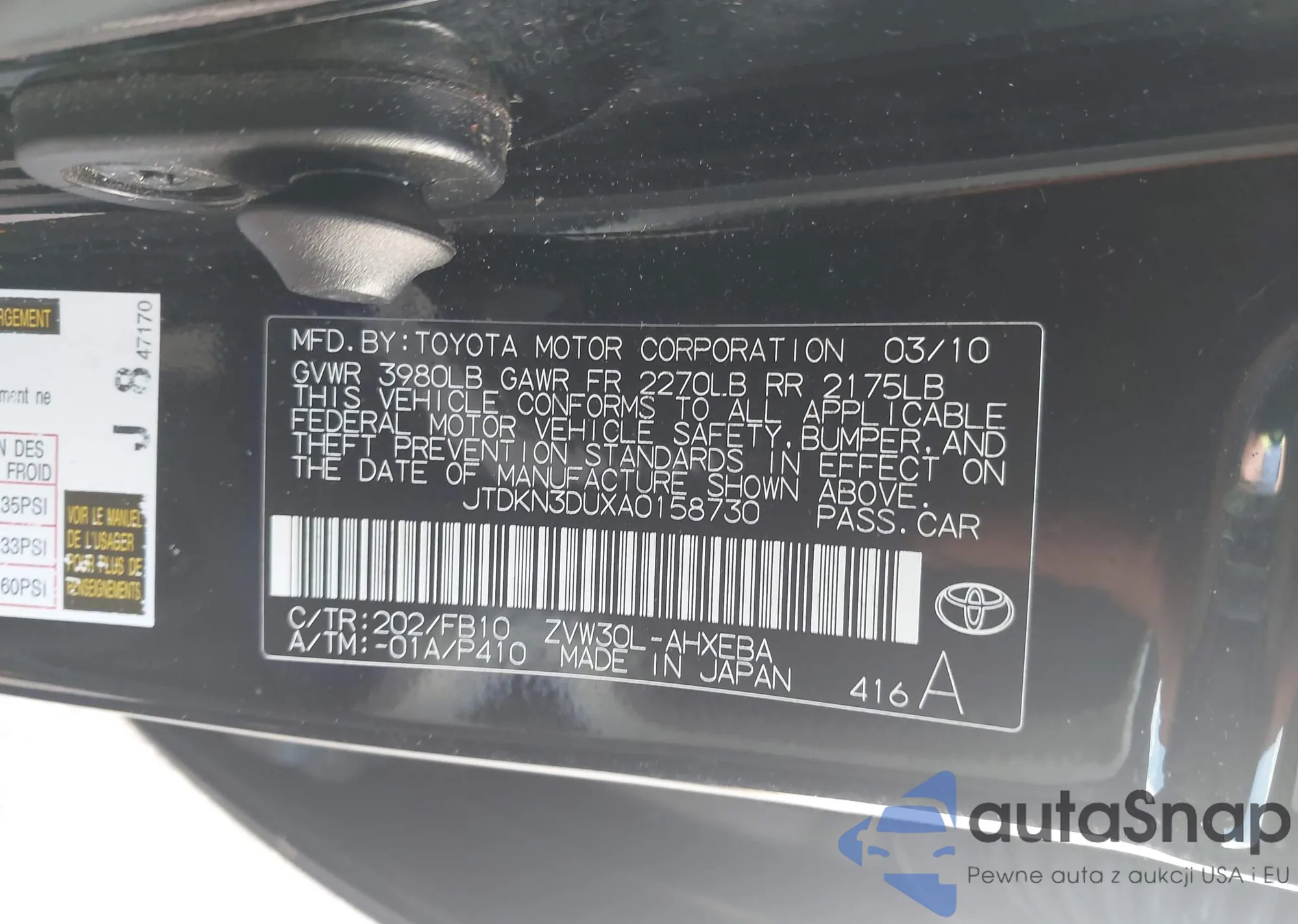 VIN: JTDKN3DUXA0158730