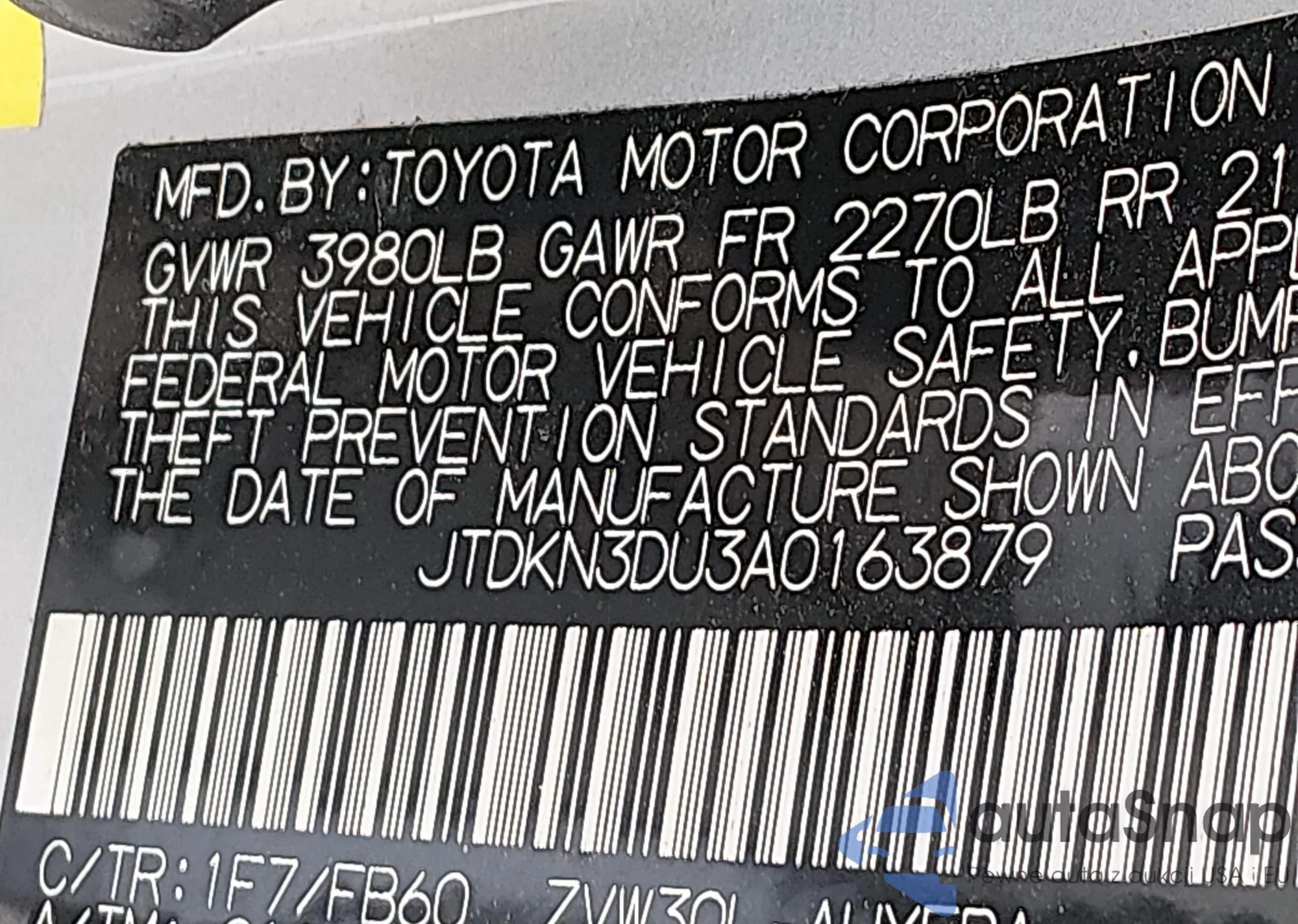VIN: JTDKN3DU3A0163879