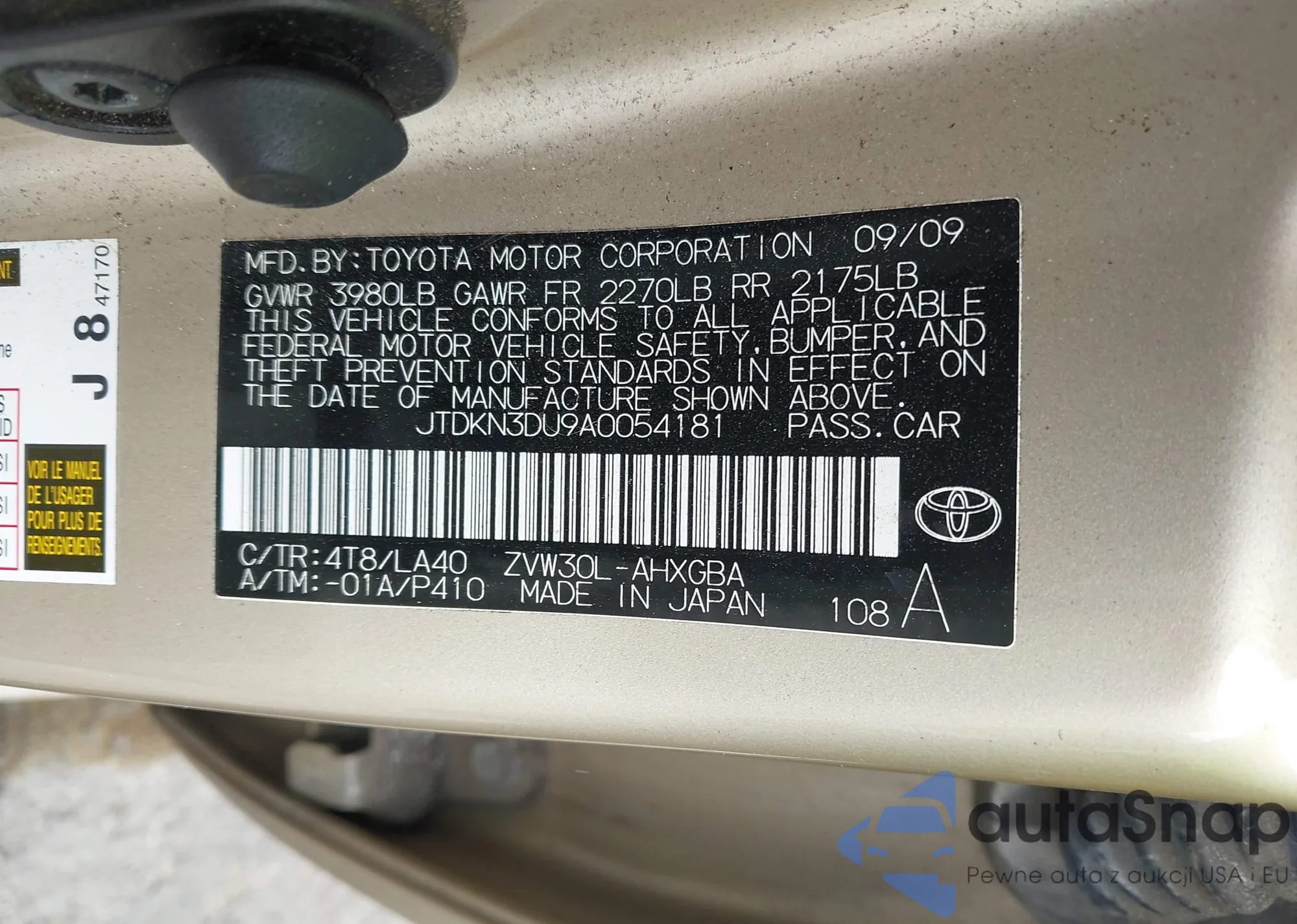 VIN: JTDKN3DU9A0054181