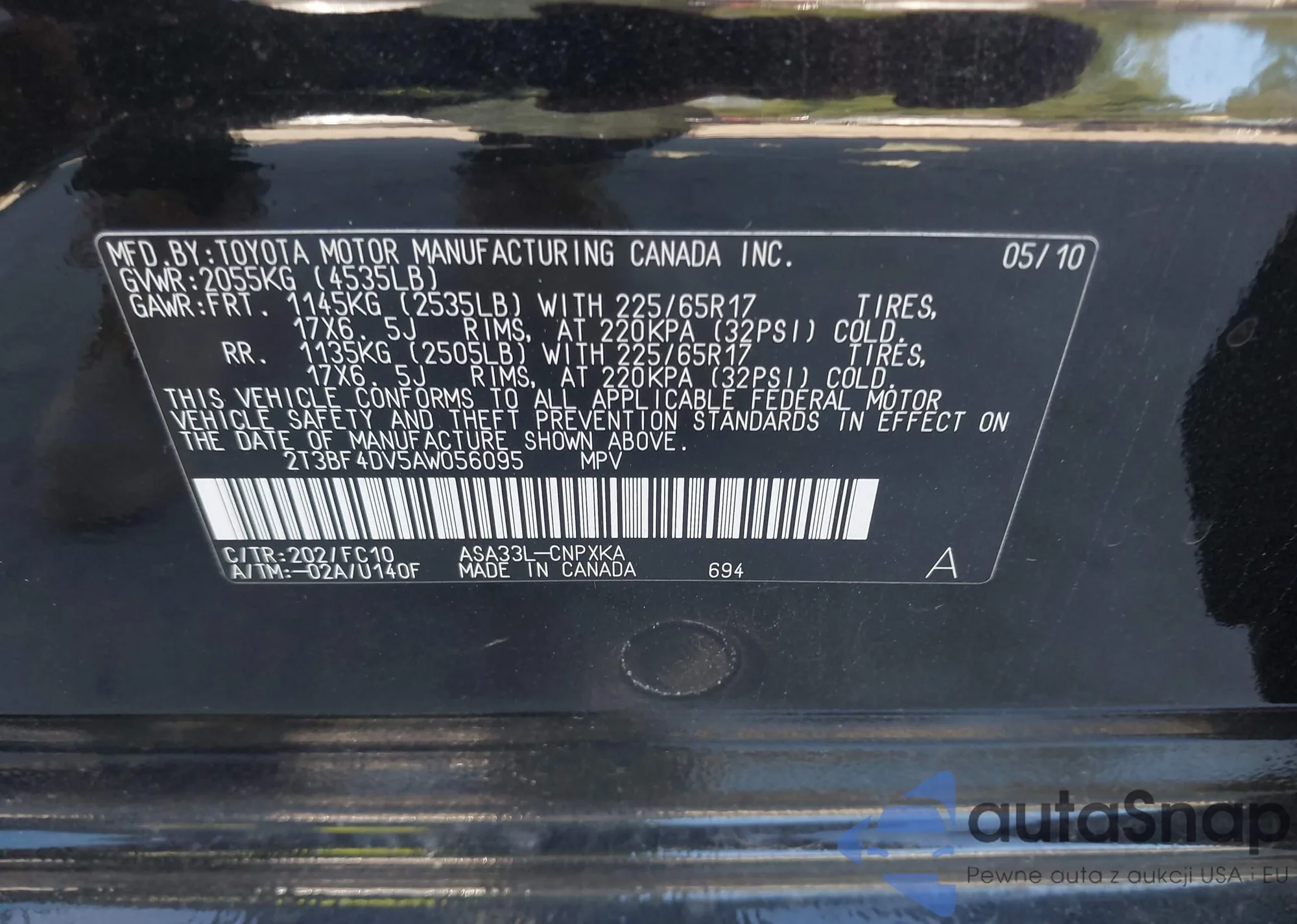 VIN: 2T3BF4DV5AW056095